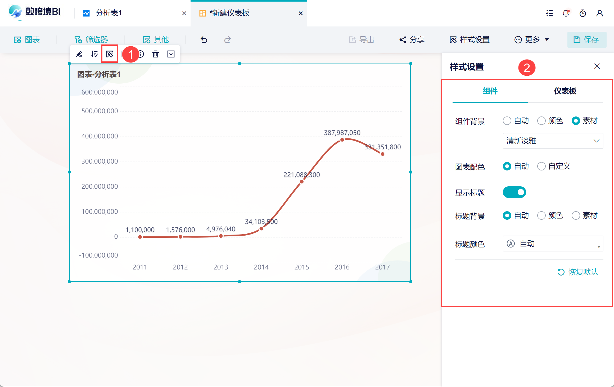 将图表添加到仪表板中,还可以对图表进行样式设置。如下图所示: