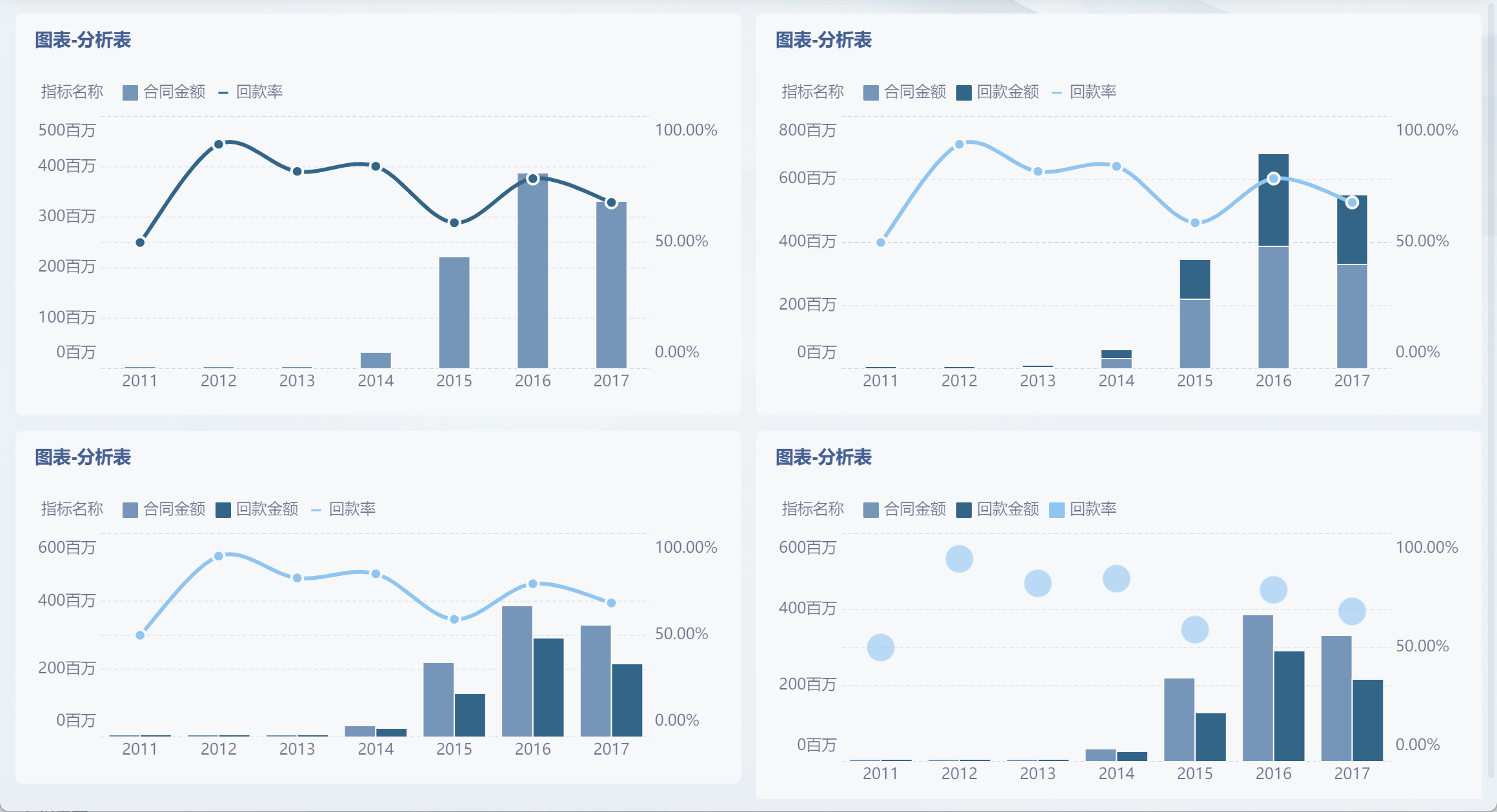 在一个图表上,可以展示多种组合类型。如下图所示: