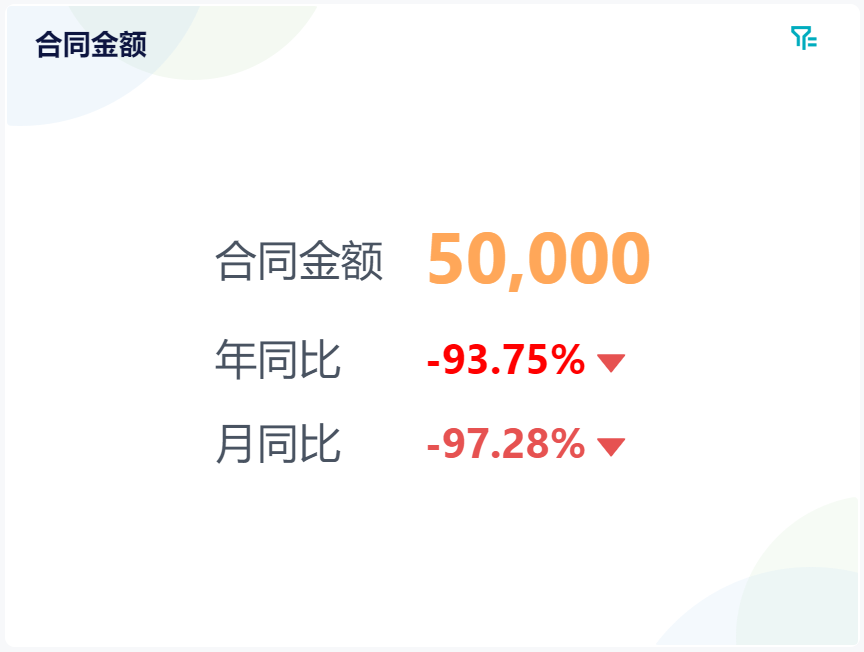 指标卡为直观展示数值的组件,可直接显示所选字段的数值。如下图所示: