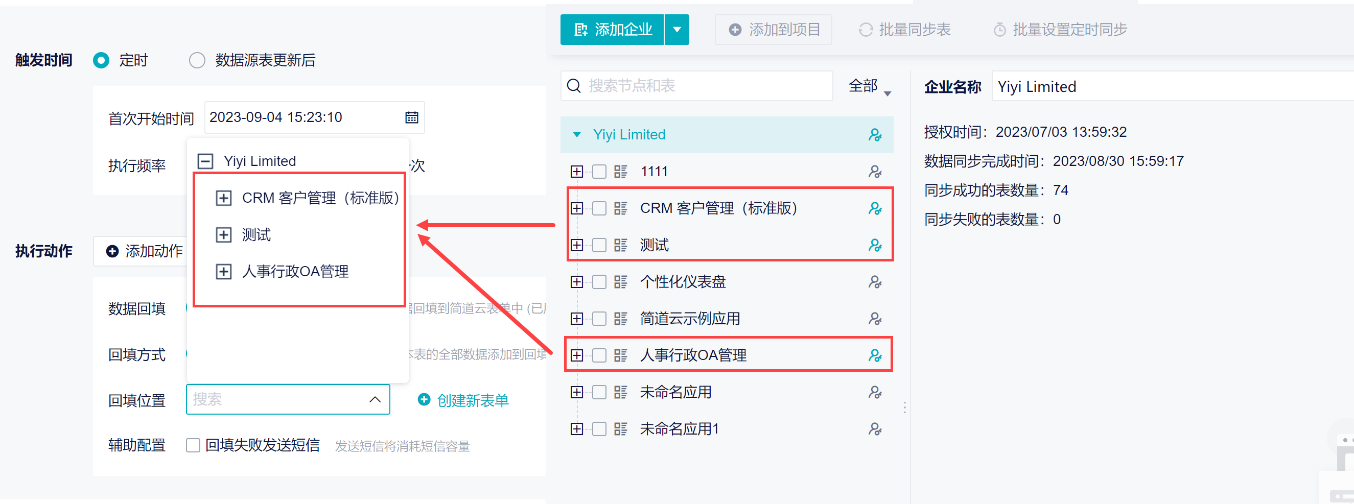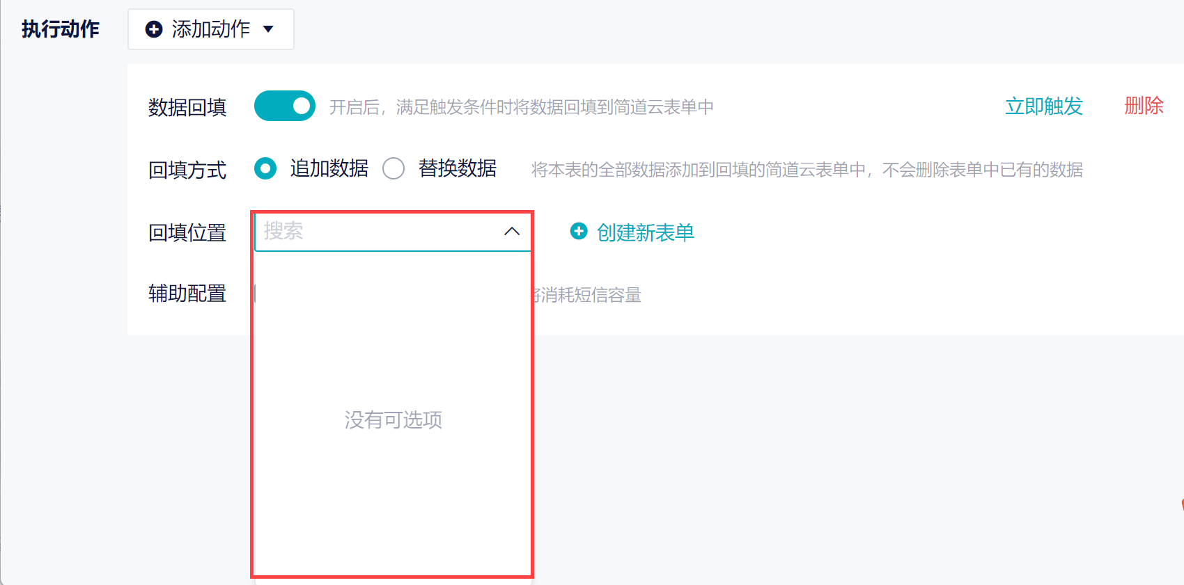 ③ 要有简道云数据节点的权限。若成员没有节点的权限,回填位置没有可选项。详情参见文档:权限设置