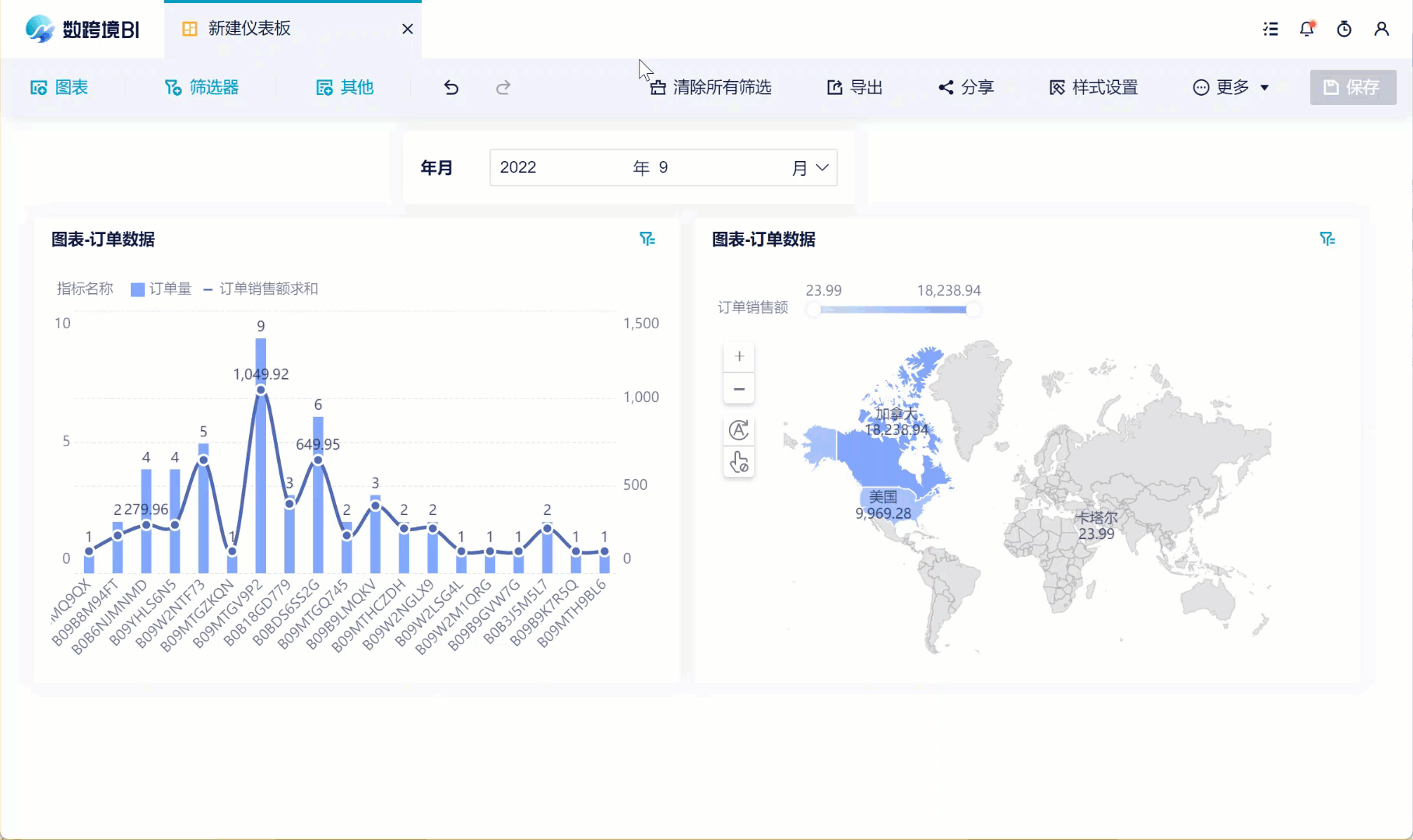 3)在筛选器中选择「2022 年 9 月」,那么图表中就会展示当月的数据情况。如下图所示: