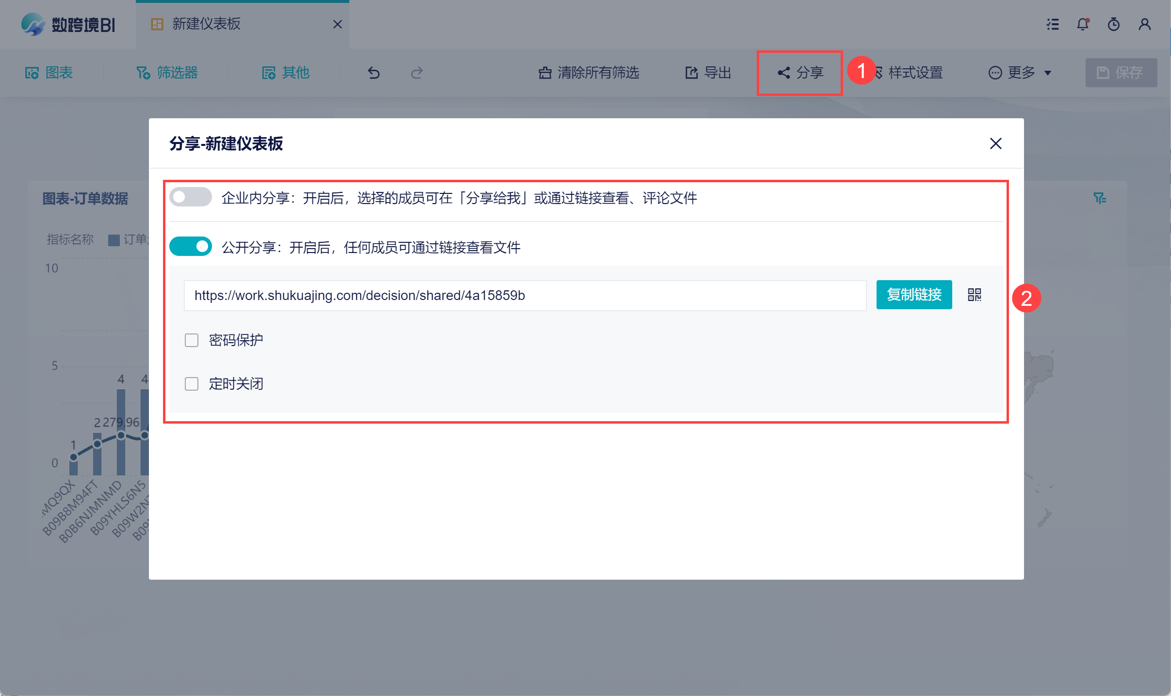 本文介绍如何制作仪表板,并将自己的仪表板分享给他人查看。