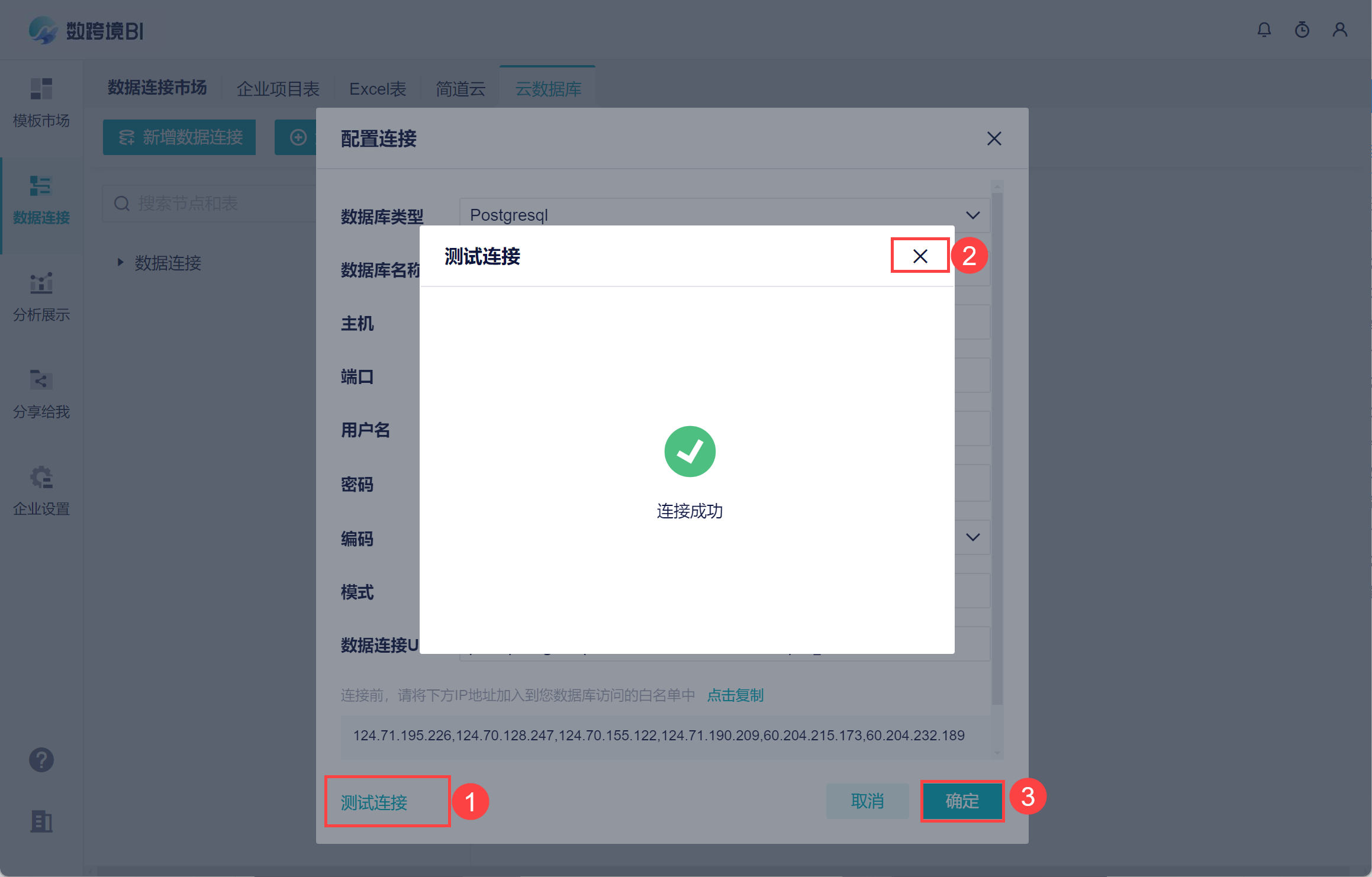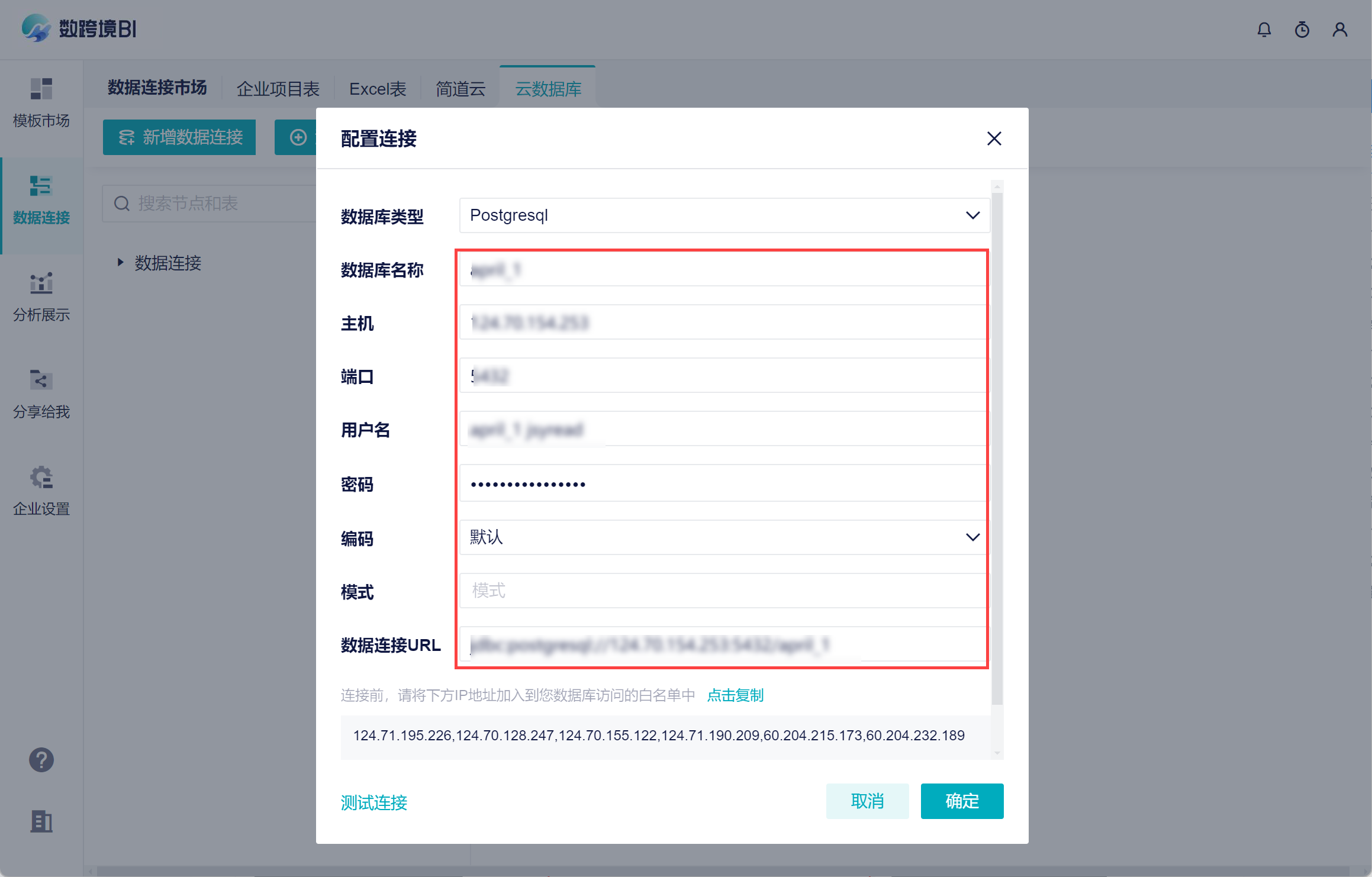 连接前,请将数跨境 ip 地址加入到您数据库访问的白名单中。