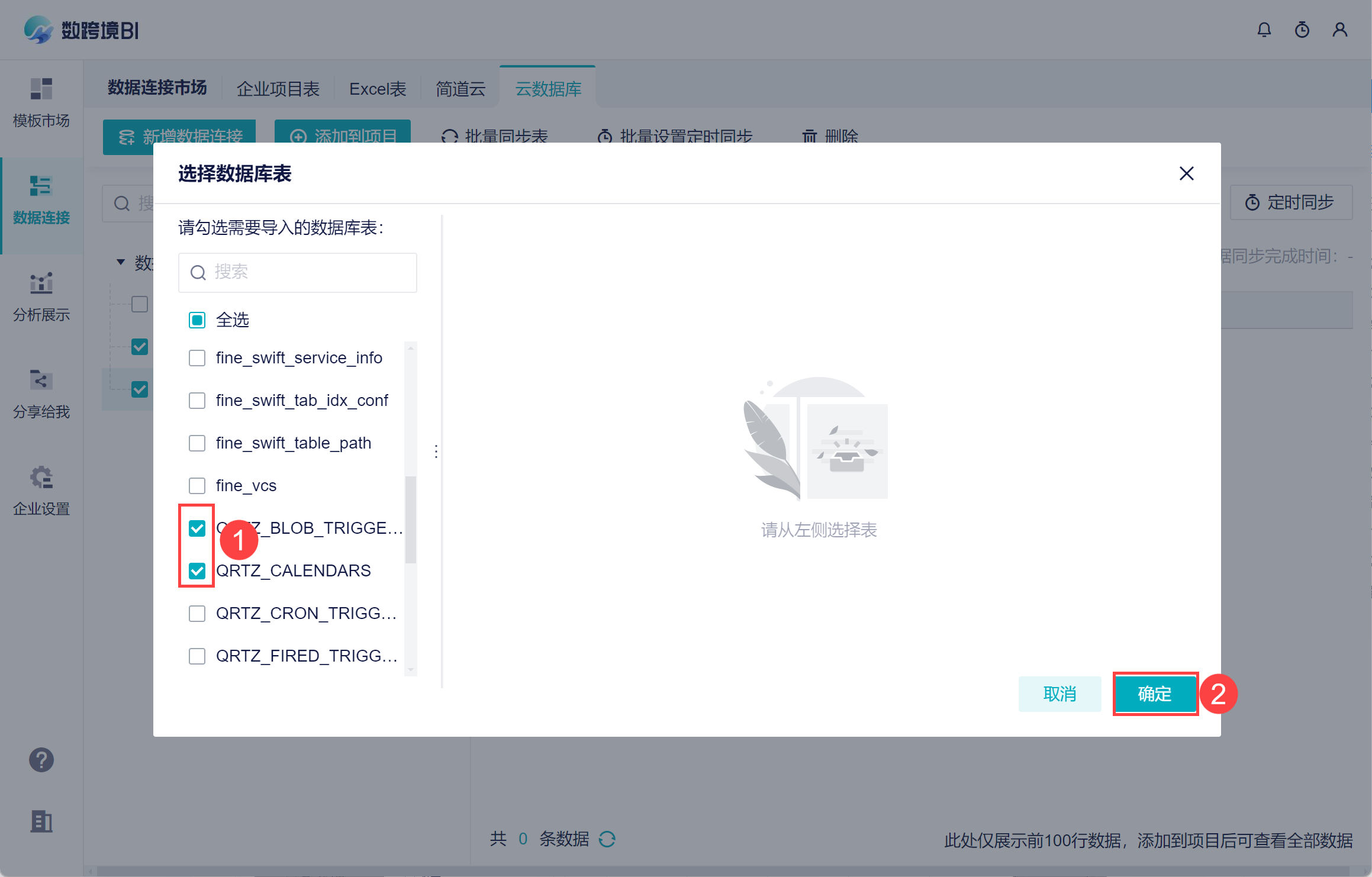 1)点击「确定」后,可以勾选导入数跨境的数据库表。如下图所示: