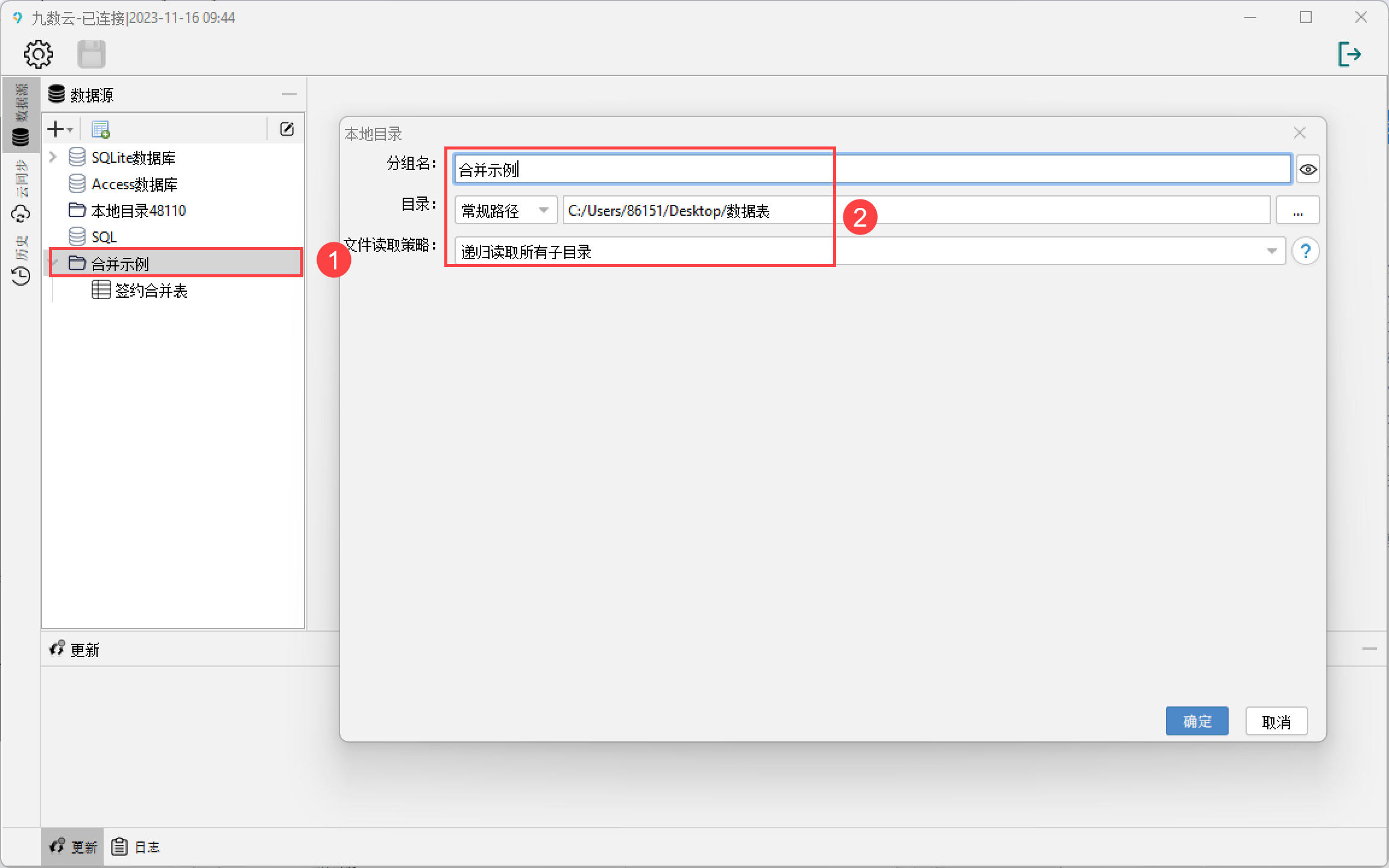 6)在弹窗中,选择好本地文件夹所在目录,并设置文件夹读取策略。相关说明如下表所示: