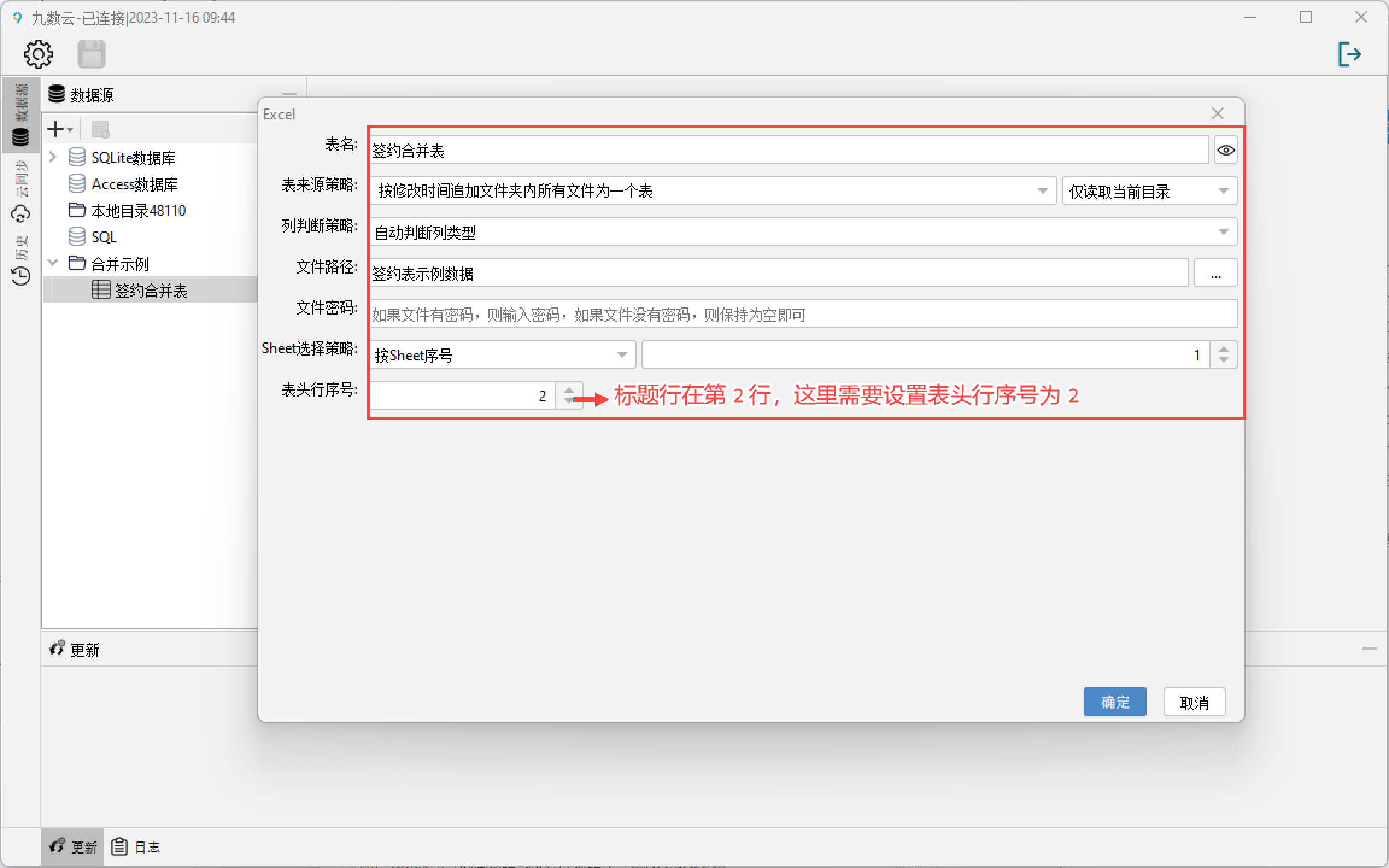 | 表头行序号 | 设置表头所在的行号,若表头在第 2 行,那么这里的序号选择 2 。 注:若表头行为空,表会标红报错。用户可查看一下自己数据的表头行,并对此配置进行设置。 |