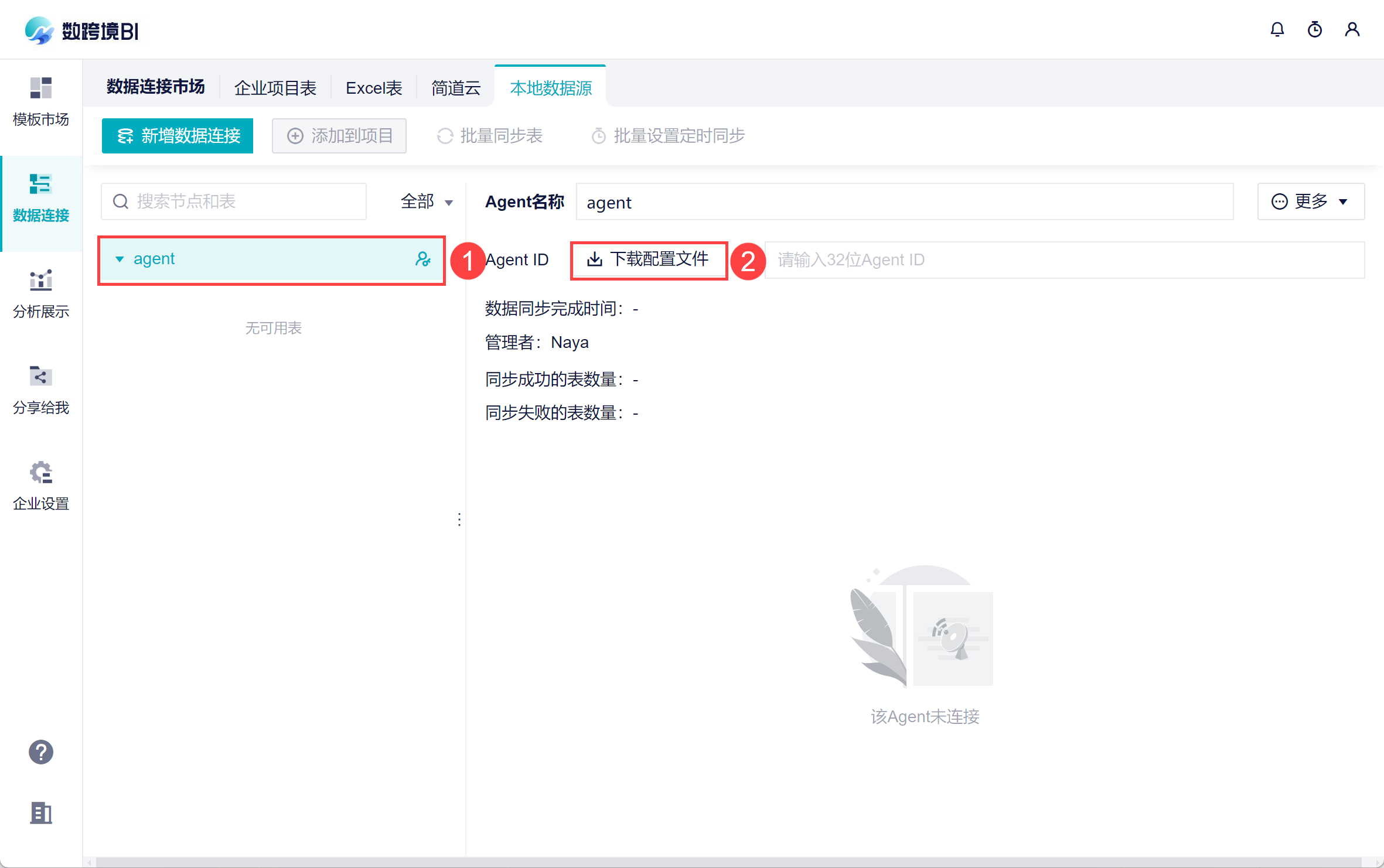 1)进入数据连接市场,新增「本地数据源」。如下图所示: