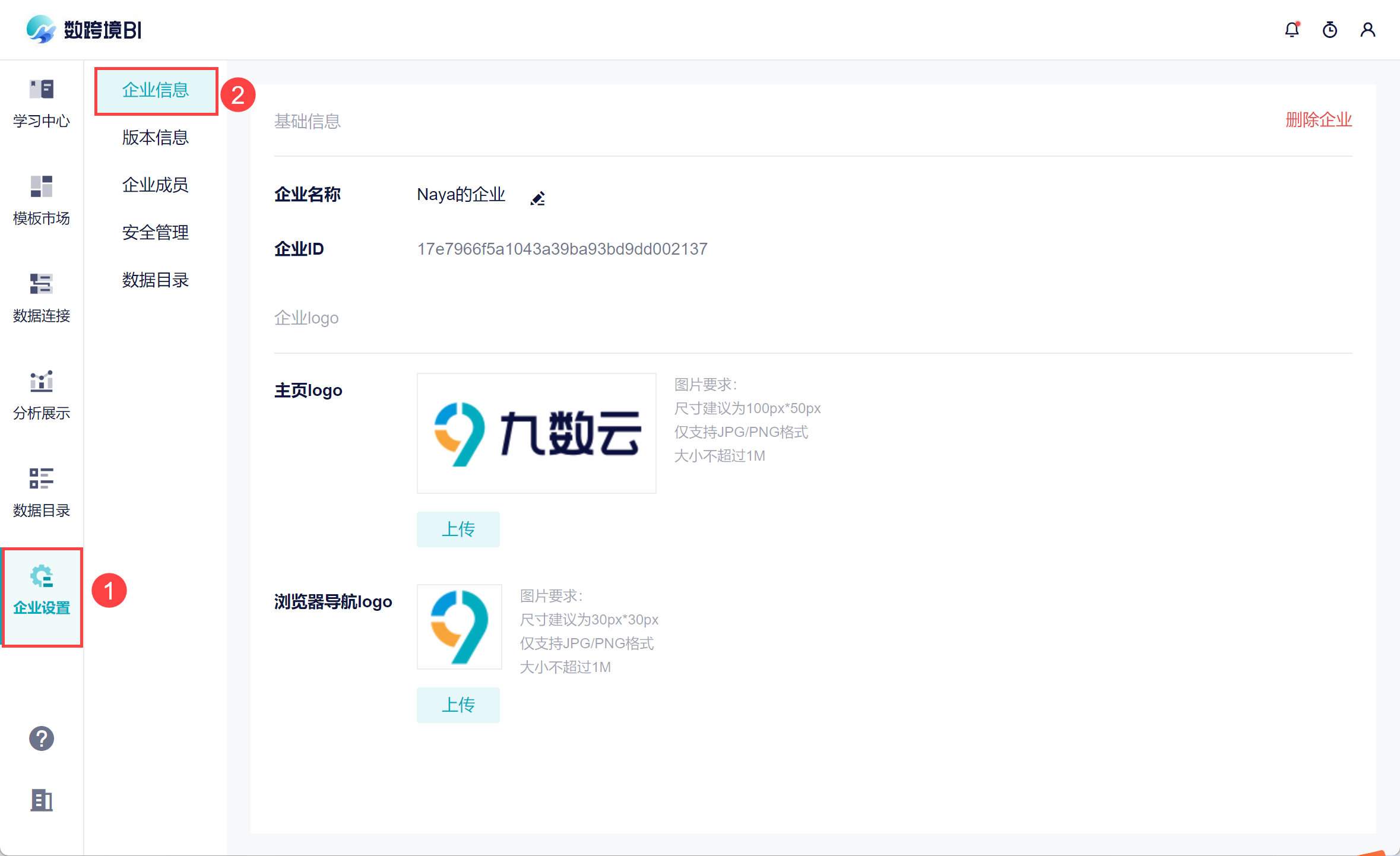 2)仅 企业版用户可修改企业 logo,其他版本用户如需使用该功能,请先升级版本。详情参见:版本信息