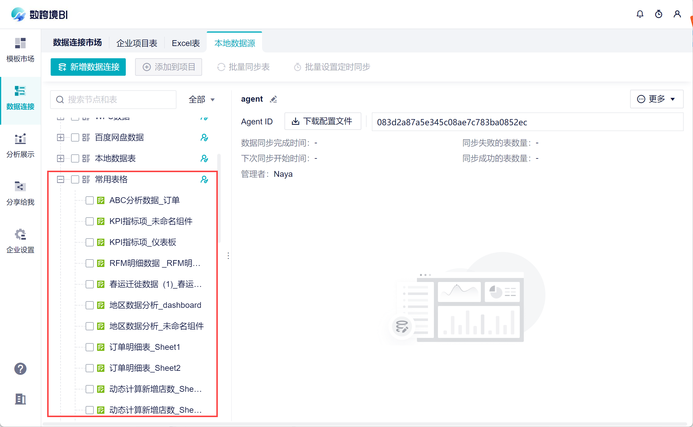 而使用本地宝,可以直接连接本地文件夹,获取文件夹中的 Excel 表、csv 表。当本地文件夹中的表数据发生变化,本地宝可以自动获取更新。