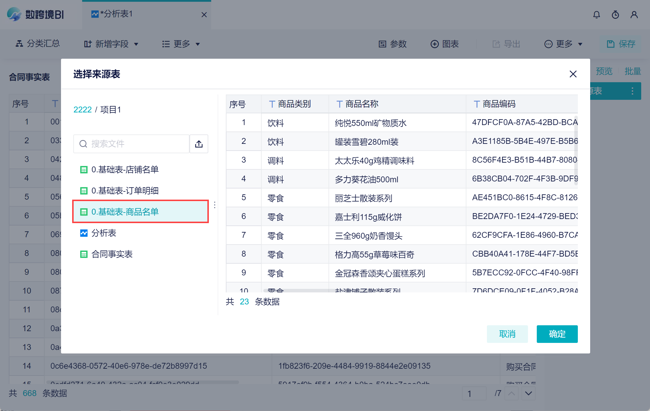 点击后进入分析表制作页面,在「来源表」步骤中点击「切换」,就可以对更换来源表数据。如下图所示: