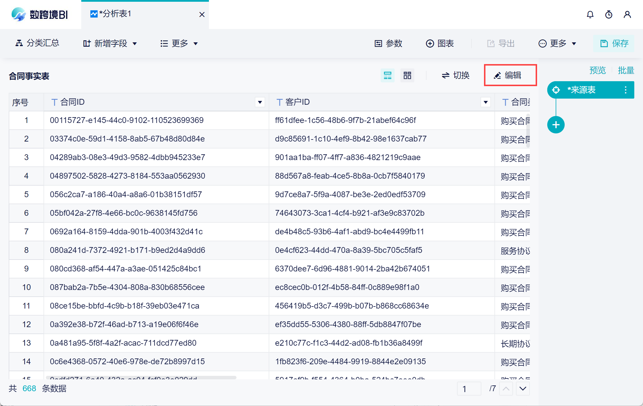 1)如果想要对来源表进行一些修改,可以点击「编辑」按钮进入到来源表的编辑界面,如下图所示: