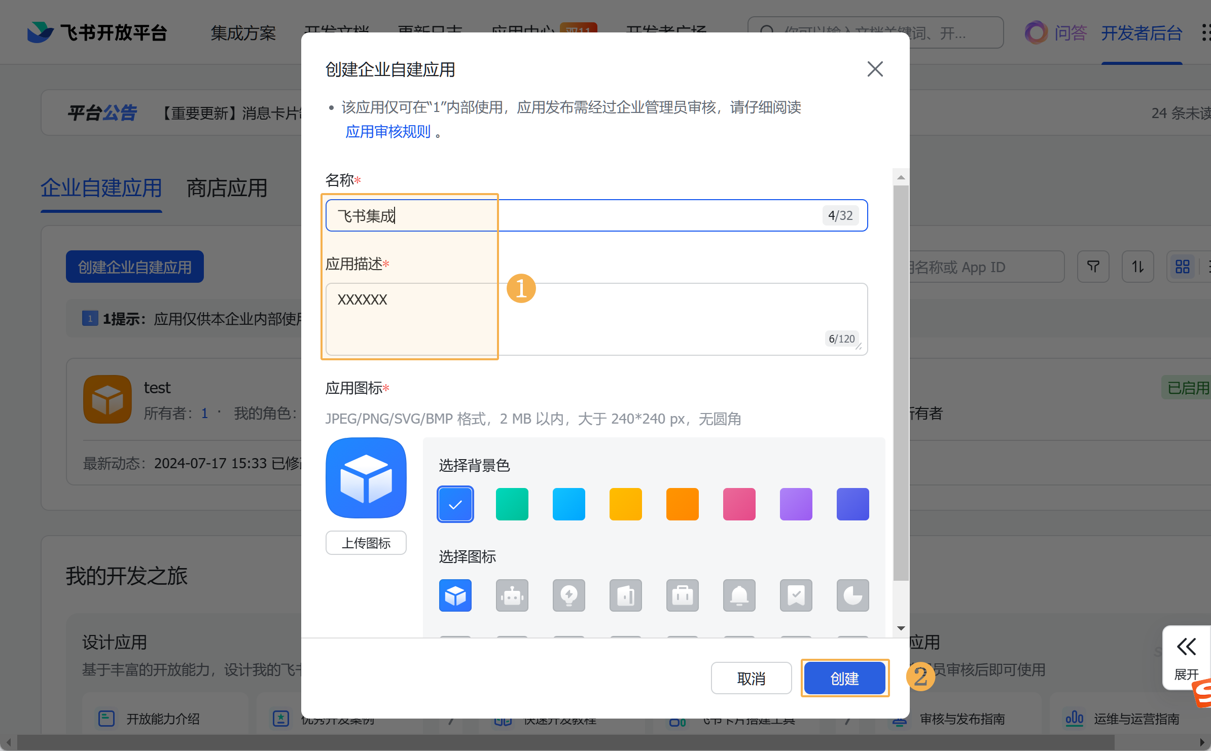 2. 创建自建应用编辑