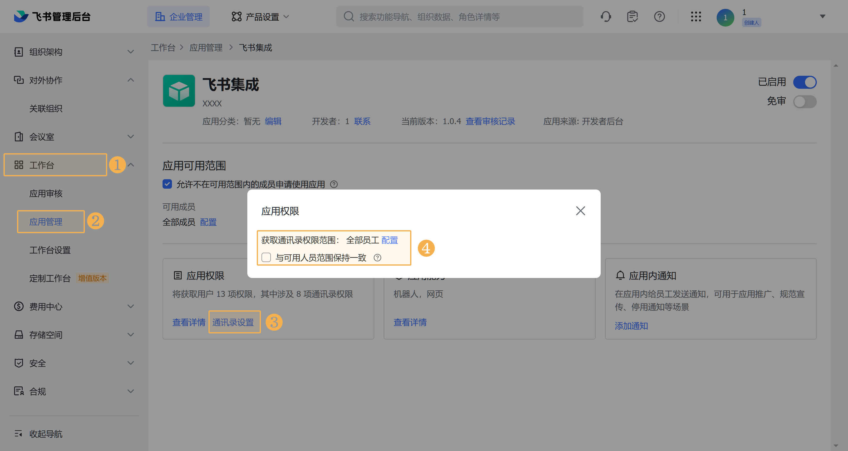注:如果是飞书管理员创建的应用,无需审批。若需要审批,请管理员进行审批并通过。