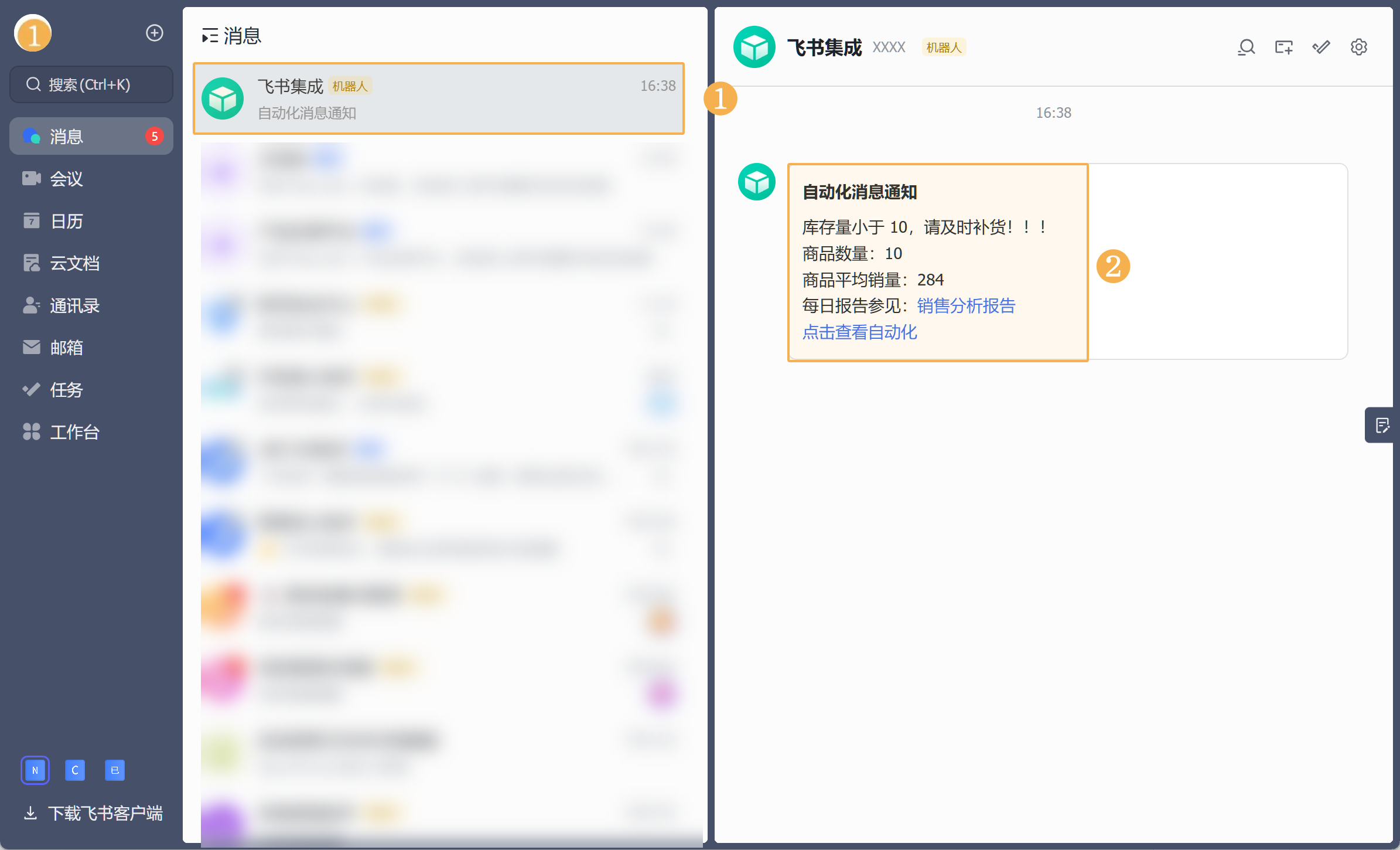 详情参见文档:自动化-消息通知