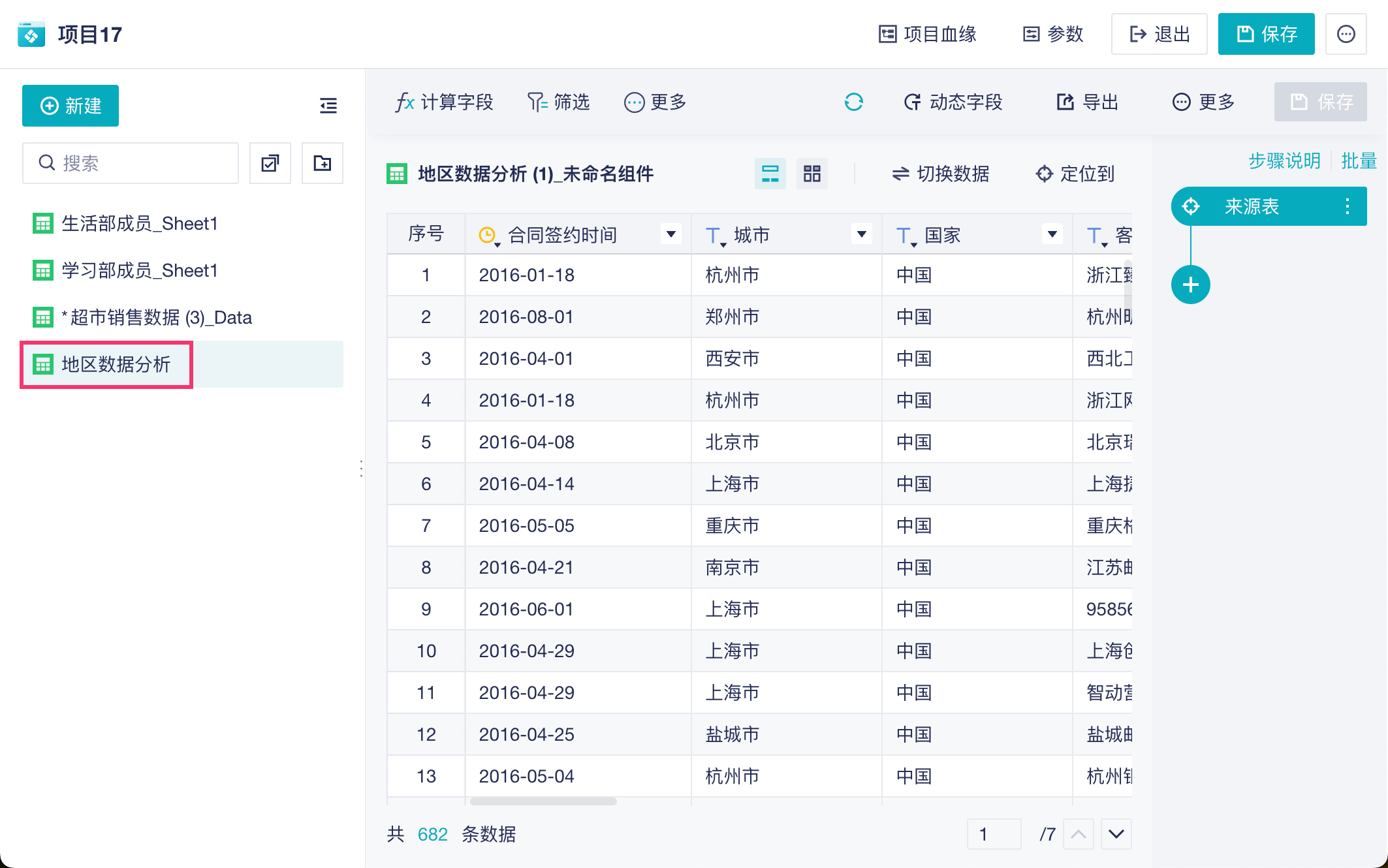 下载示例数据并上传到产品中,将示例数据添加到项目中,点击「创建分析表」,如下图所示: