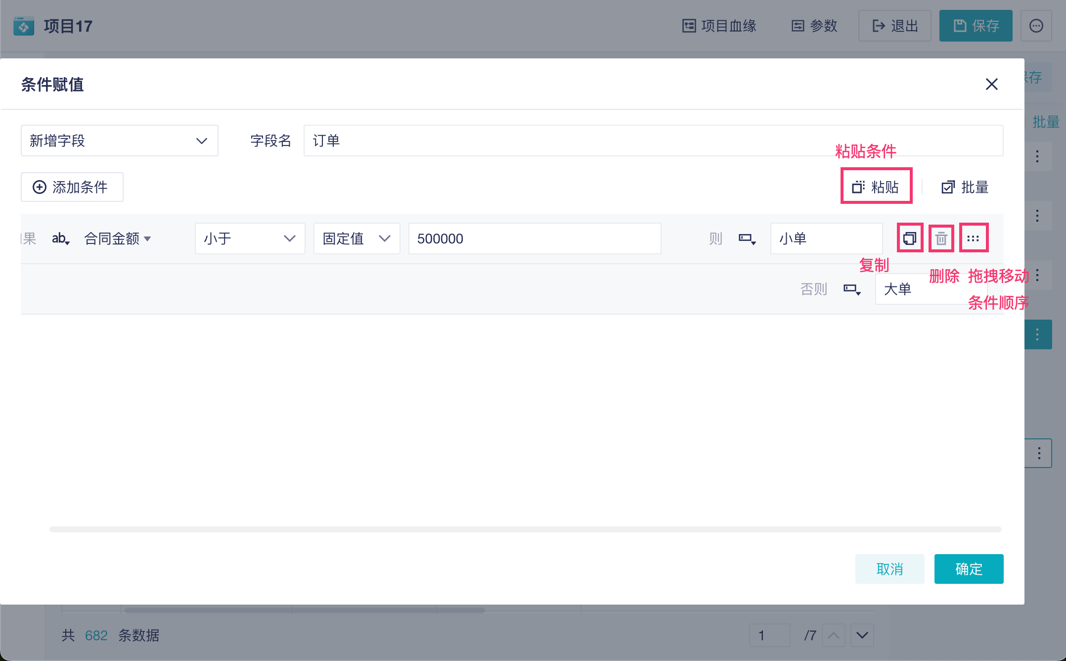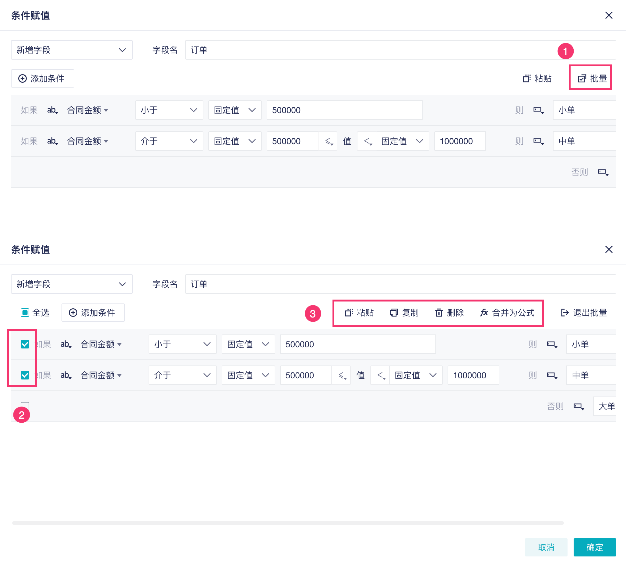 • 支持普通条件、公式条件,支持同时添加多个不同类型的条件,灵活进行赋值;