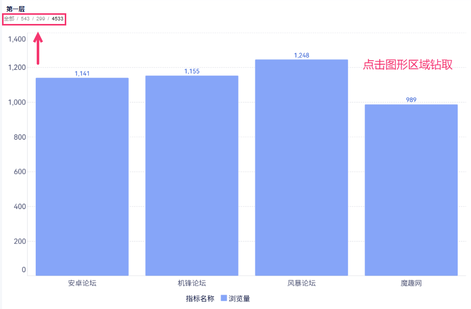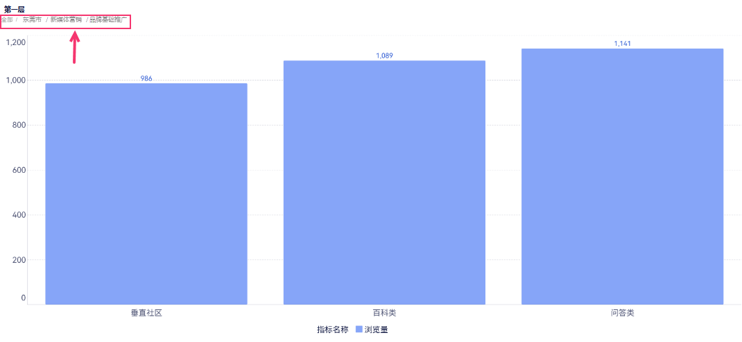 2)在图表标题下展示钻取的各层级内容,如下图所示: