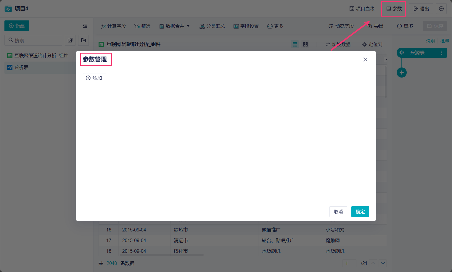 1)点击功能栏的「参数」按钮,进入「参数管理」,如下图所示: