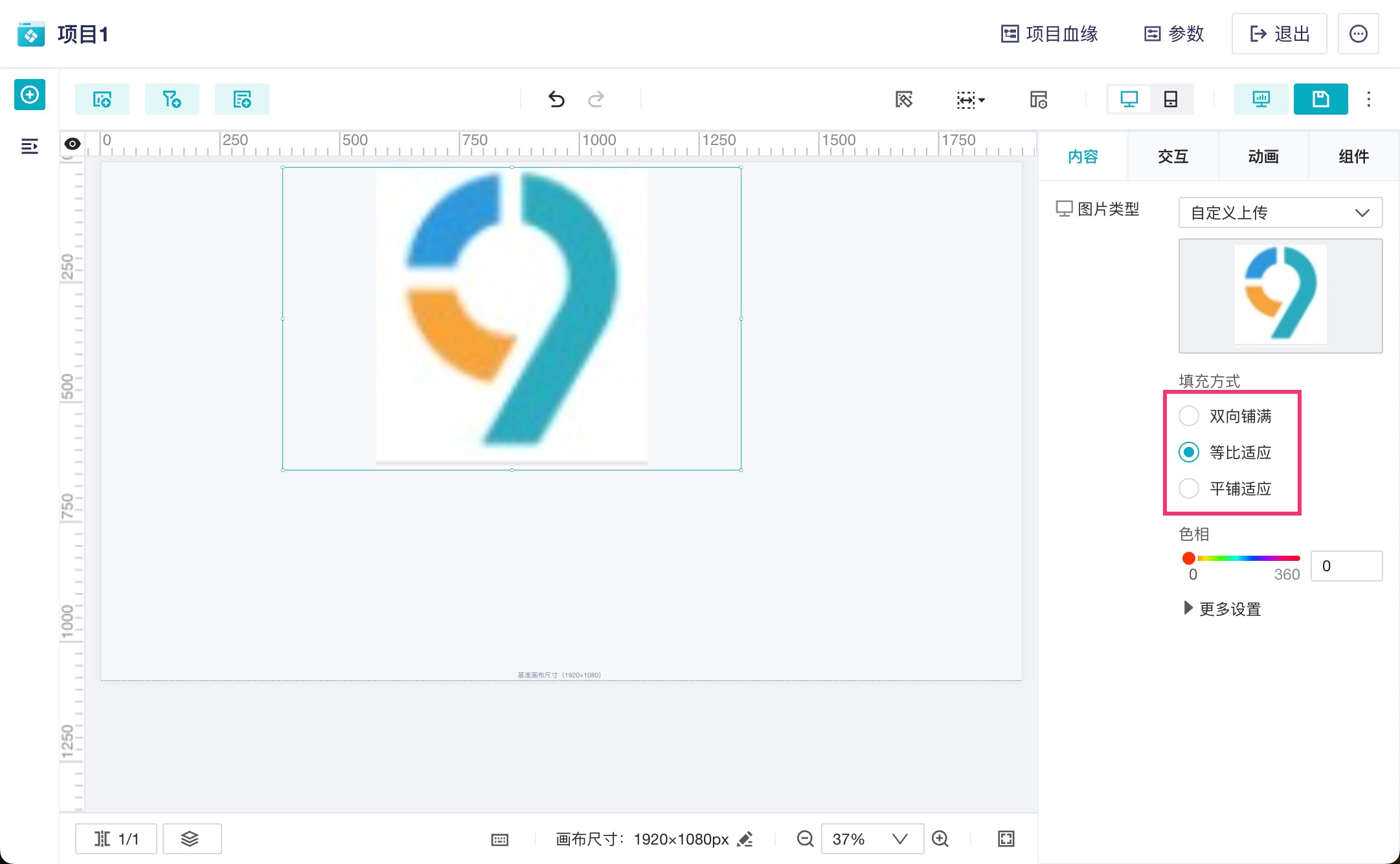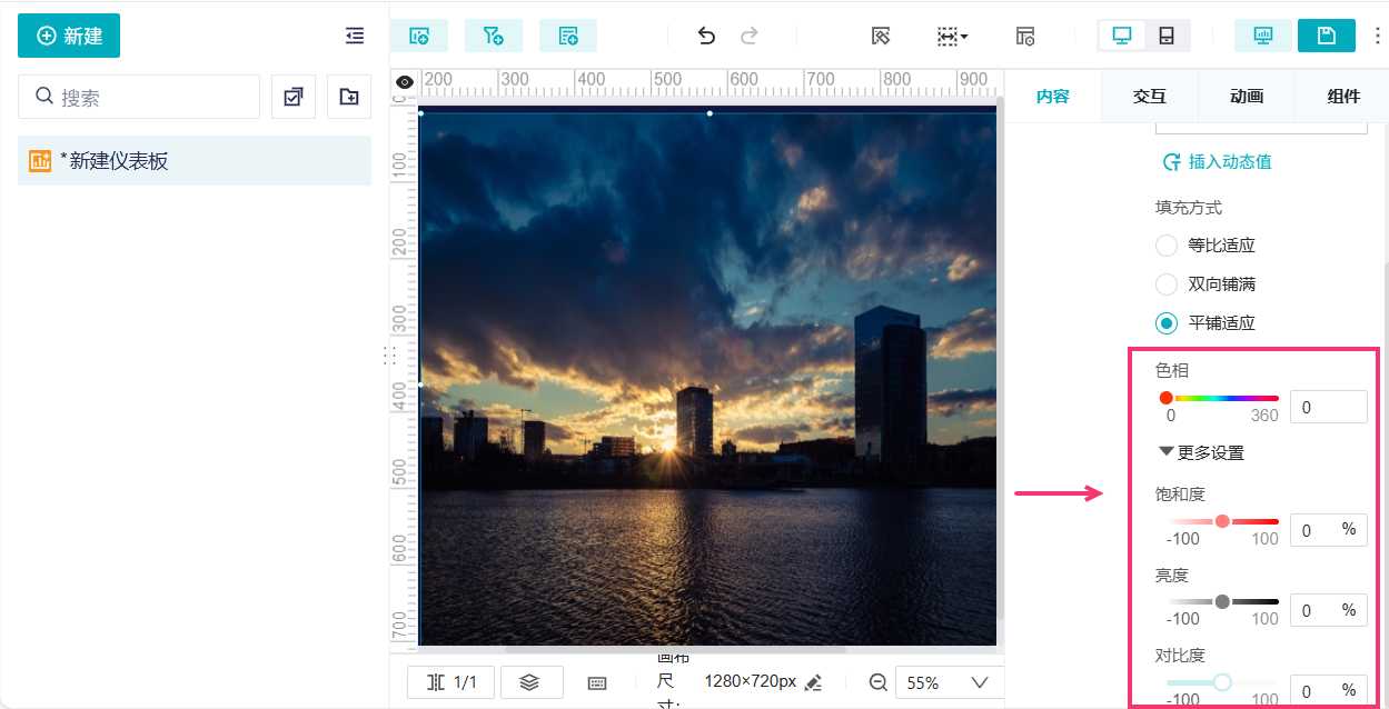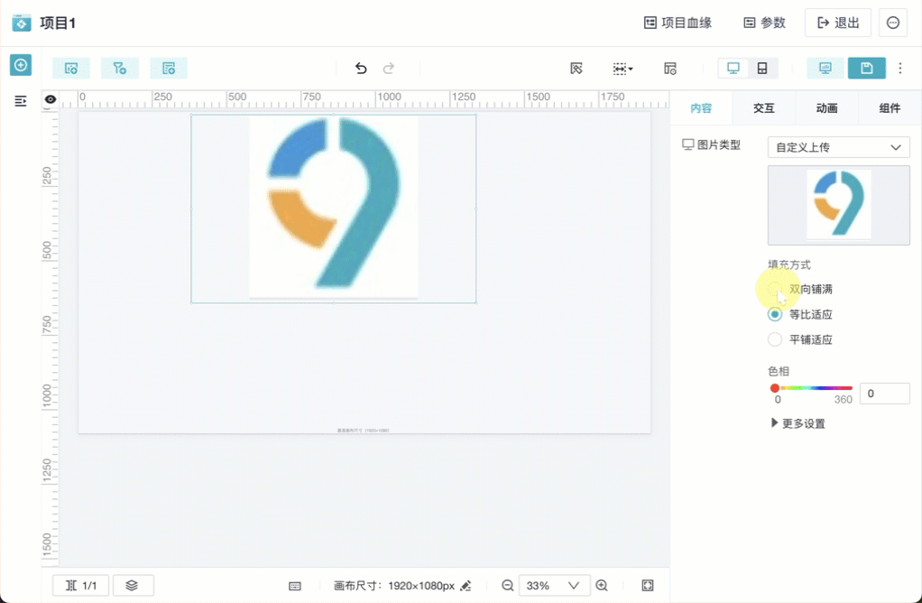 选择图片后,支持设置图片的「填充方式」和「色相」。