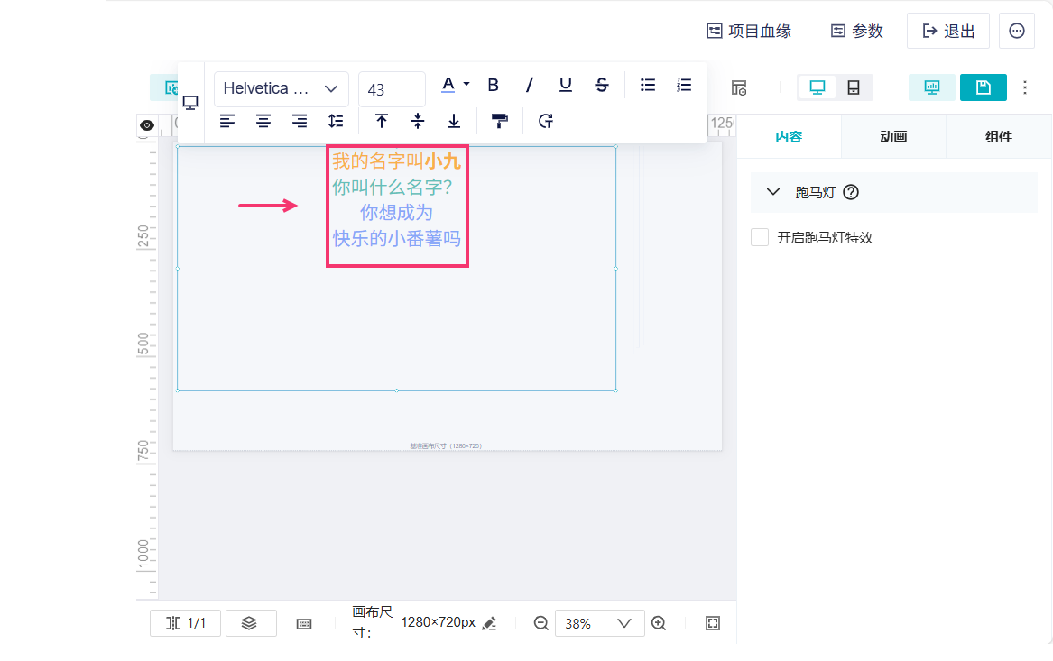 支持「开启跑马灯特效」,实现文字整体滚动的效果。如下图所示: