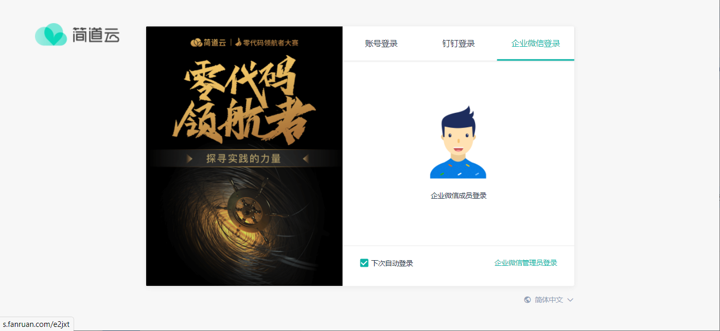 2)进入简道云登录界面。