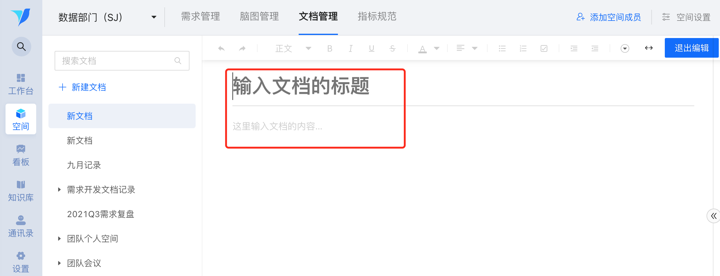 点击【新建文档】后直接跳转文档页面,可立即编辑标题名称和文档内容