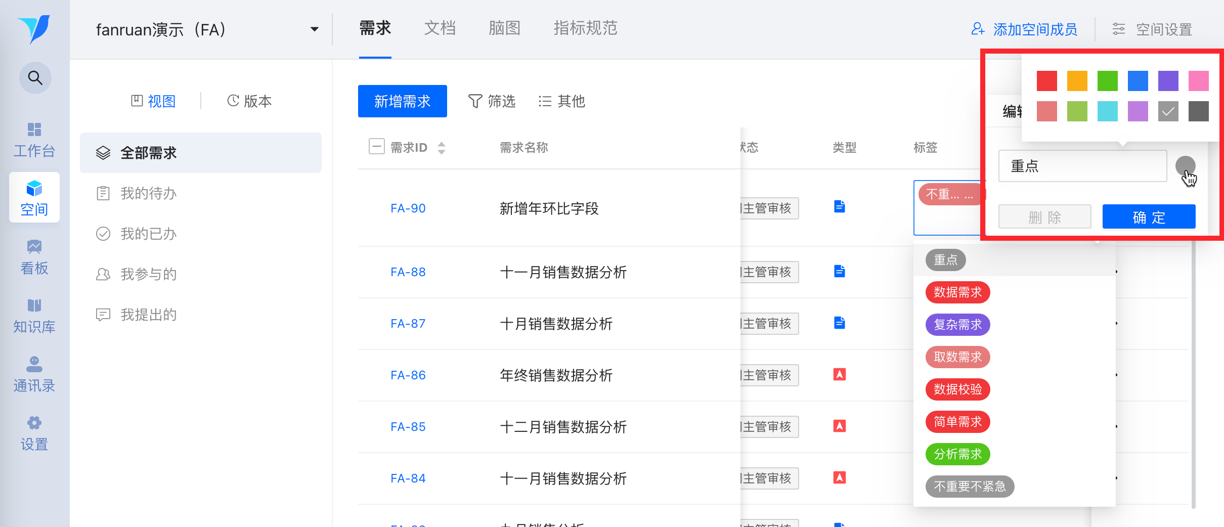 指定标签可以修改标签的名称和颜色,更好地体现需求处理的优先级