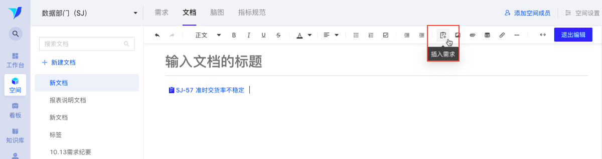 点击【新建文档】后直接跳转文档页面,可立即编辑标题名称和文档内容