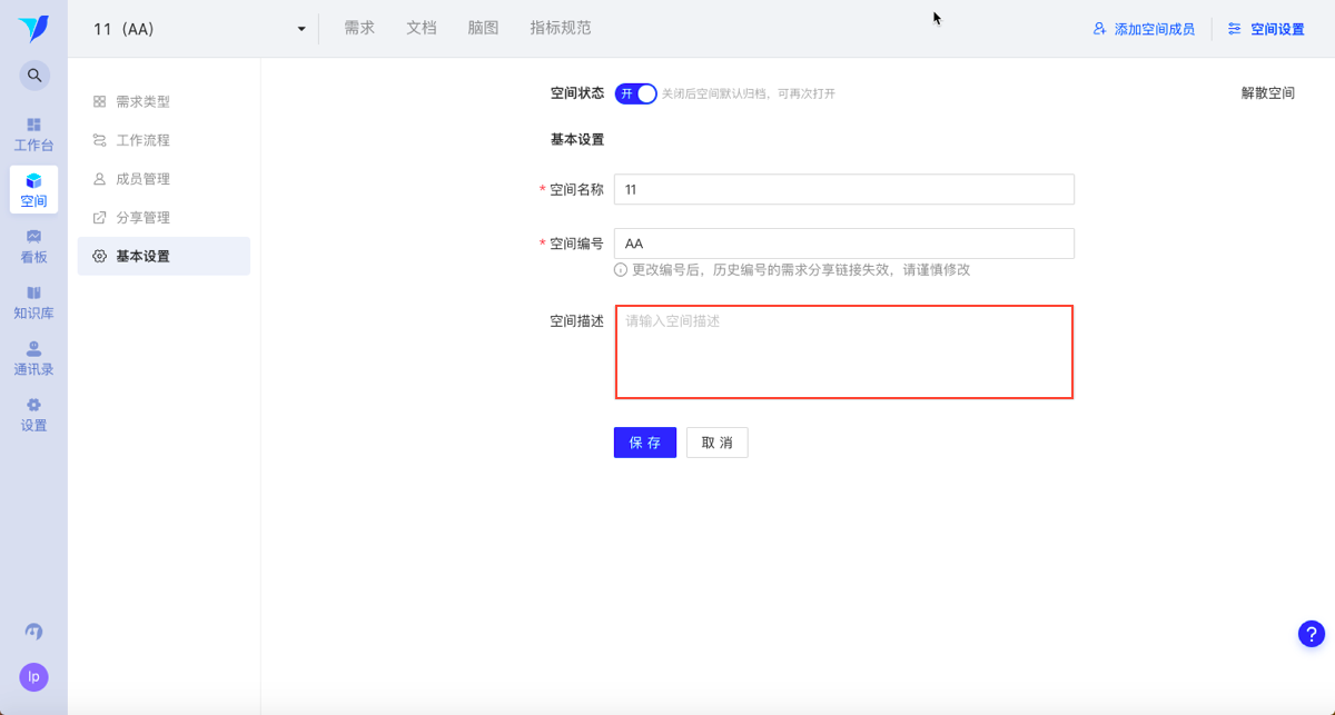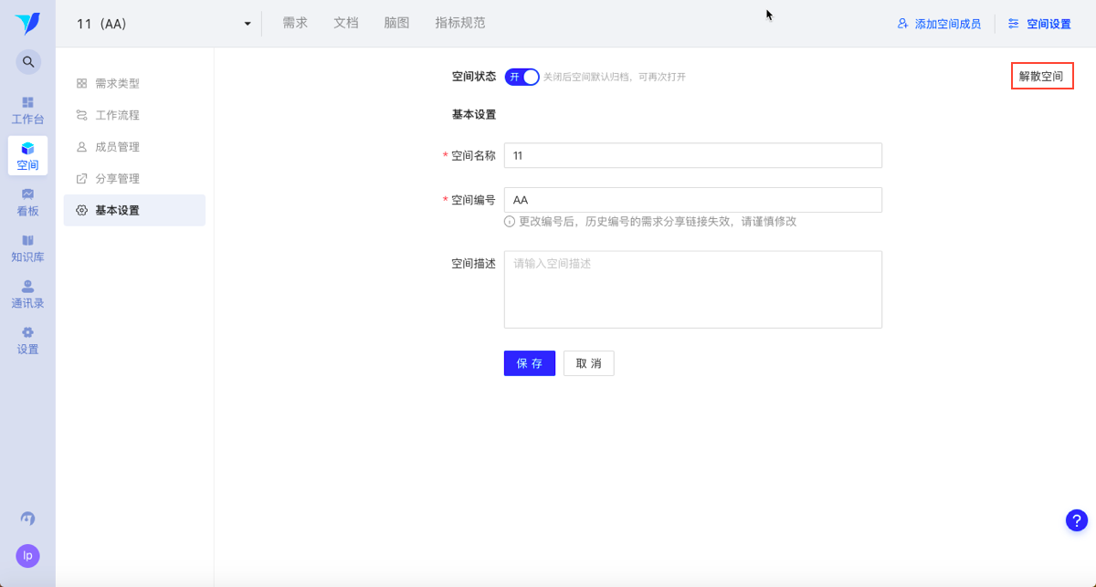 当空间内有脑图、项目、未处理完成的需求等数据,不可解散空间