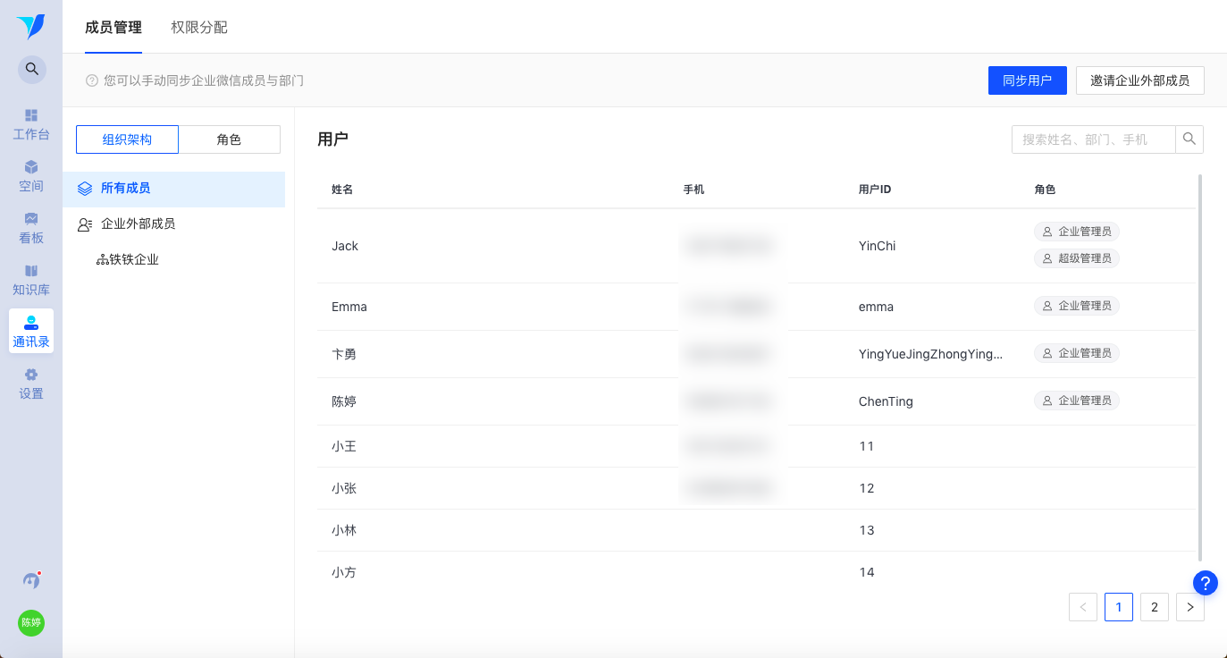 选择企业微信同步,可同步企业微信用户,更快建立用户体系,需求反馈、进度提醒、消息通知与协作更高效