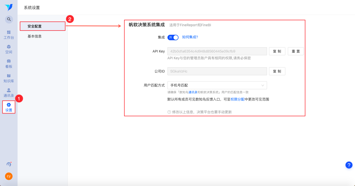 任意用户体系均可集成帆软数据决策系统,在集成前,需要先选择用户体系。点击跳转查看通讯录设置