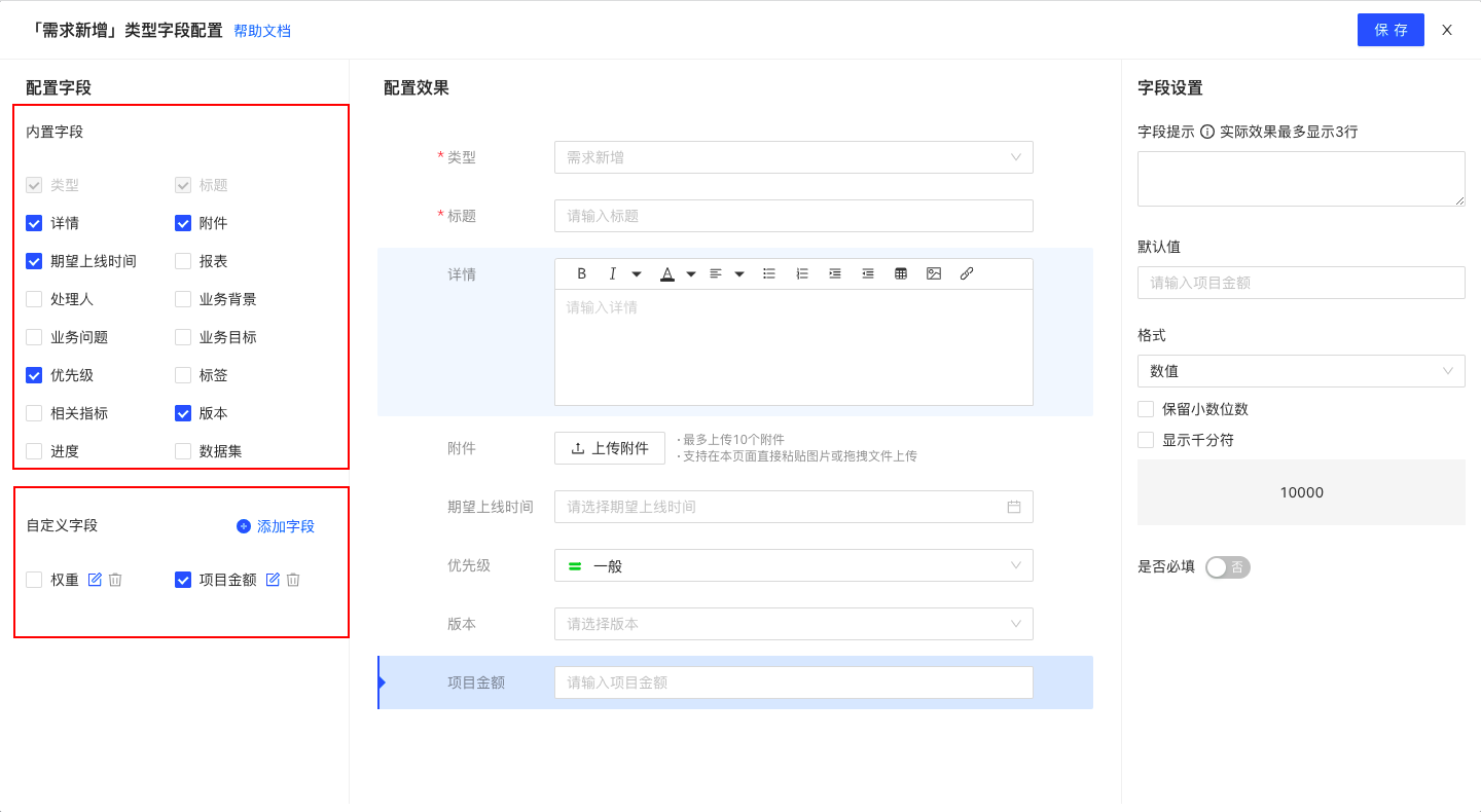 选择不同的需求类型,显示的字段不同。