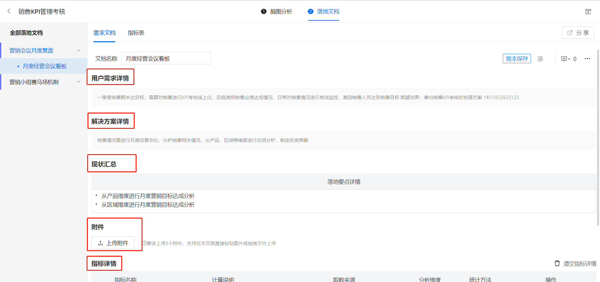 需求文档内,详细记录原始需求信息和对需求的具体分析内容。展现具体的用户需求详情;解决方案详情;指标详情等信息