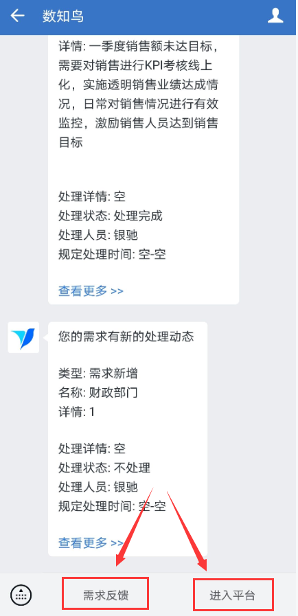 在企业微信中反馈需求的前提是平台已与企业微信集成,数知鸟平台与企业微信集成的详细操作,请查看管理员教程➡用户体系➡企业微信同步帮助文档。(点击跳转)