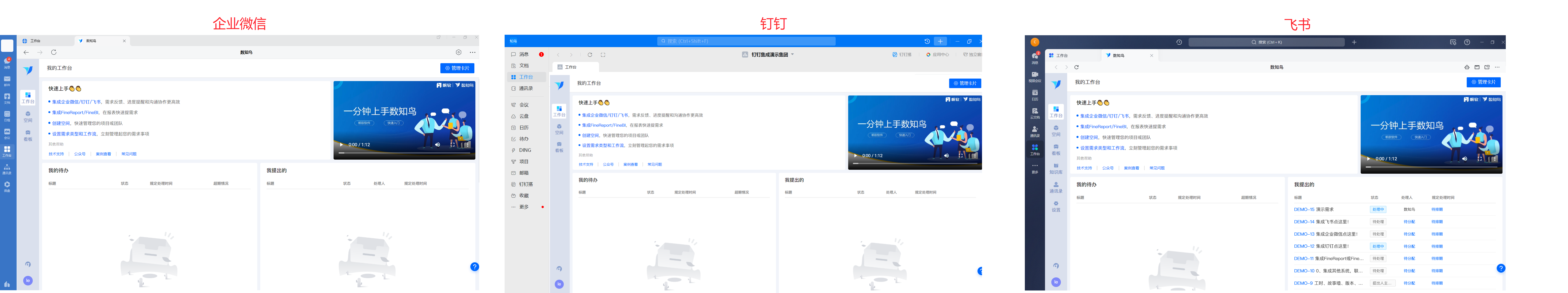 注:数知鸟可集成企业微信、钉钉、飞书三种第三方用户体系
