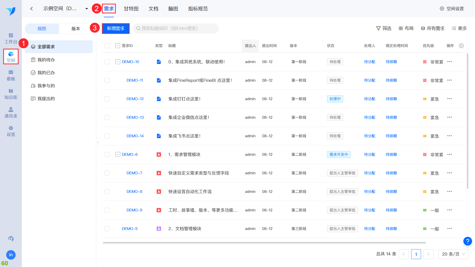 注:仅支持有「新增/复制需求」权限的用户在有权限的空间内进行新增需求操作。