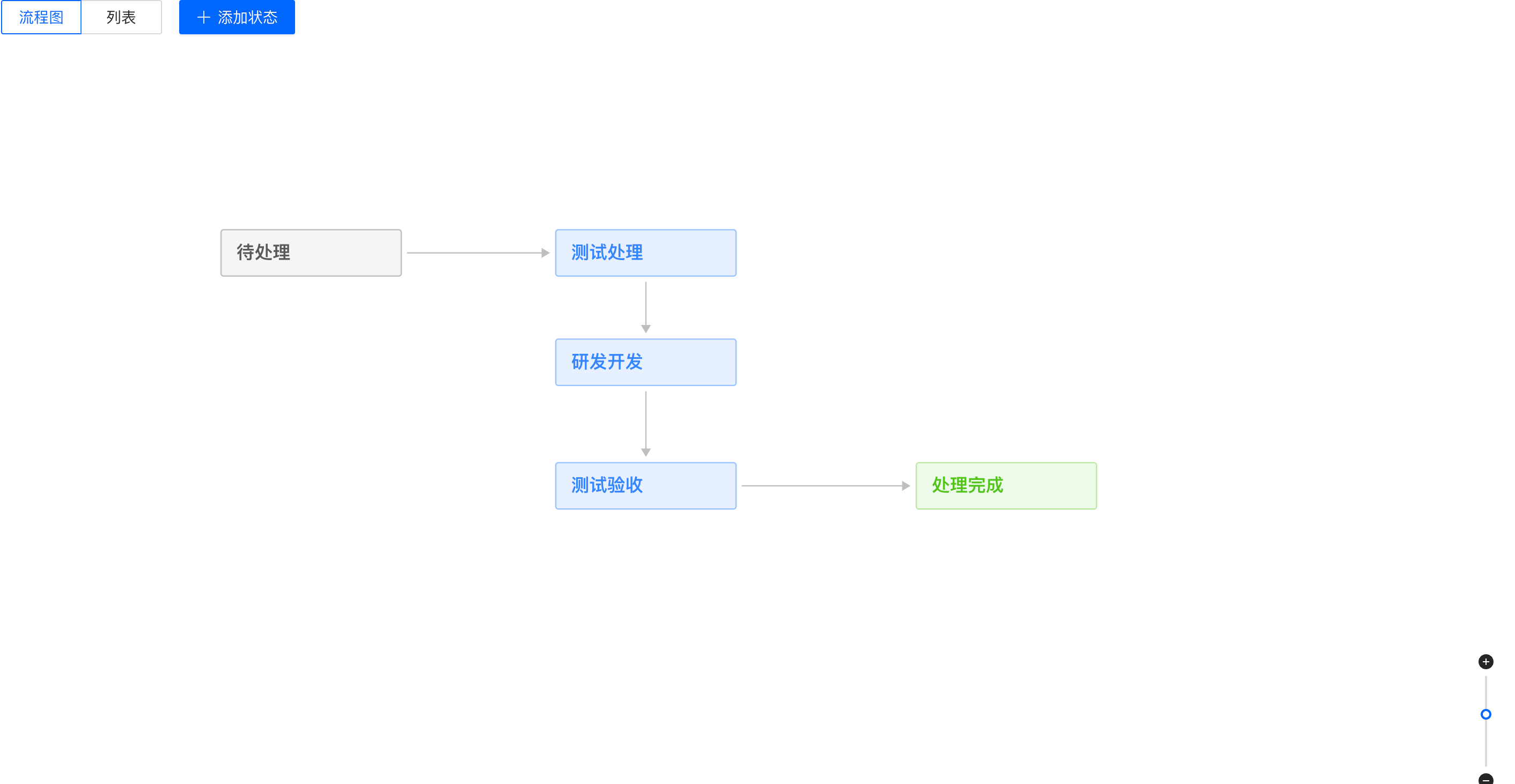 建立待处理、测试处理、研发开发、测试验收、处理完成等节点