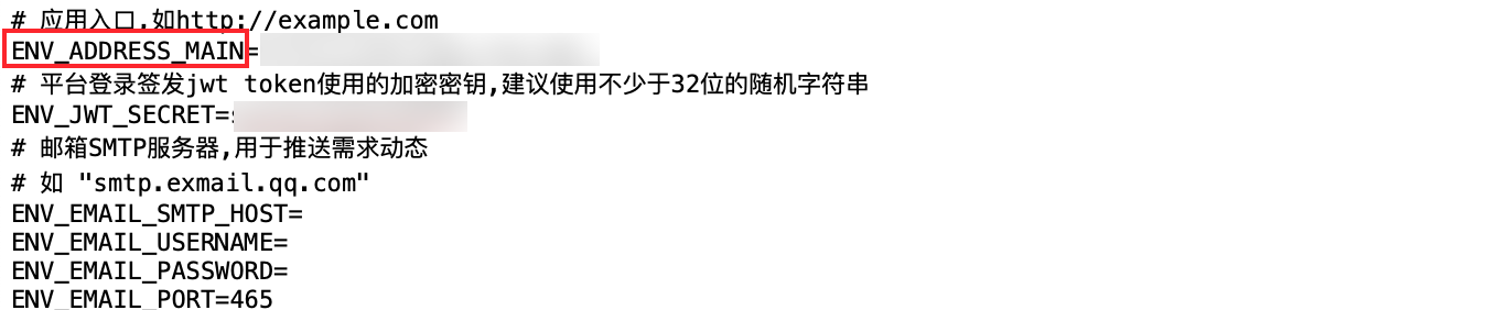 镜像包中的docker-compose.yml,app.env两个文件需要修改。其中,docker-compose.yml可按需修改端口,app.env可参照文件提示按需修改重要信息