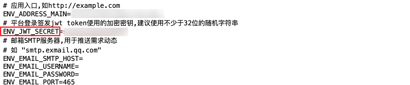 | 平台登录签发jwt token使用的加密密钥,建议使用不少于32位的随机字符串 | 高,否则有安全风险 | |