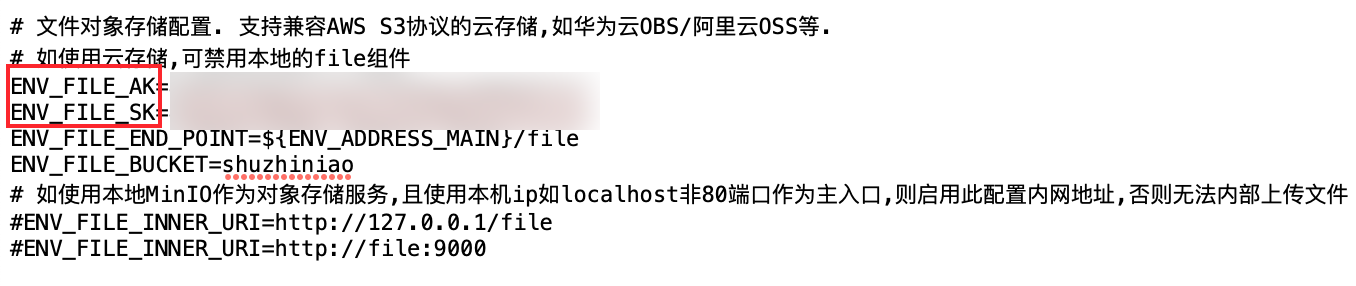 | 文件对象存储配置. 支持兼容AWS S3协议的云存储,如华为云OBS/阿里云OSS等 | 高,否则有安全风险 | |