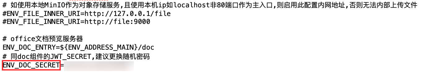 | 同doc组件的JWT_SECRET,建议更换随机密码 | 高,否则有安全风险 |