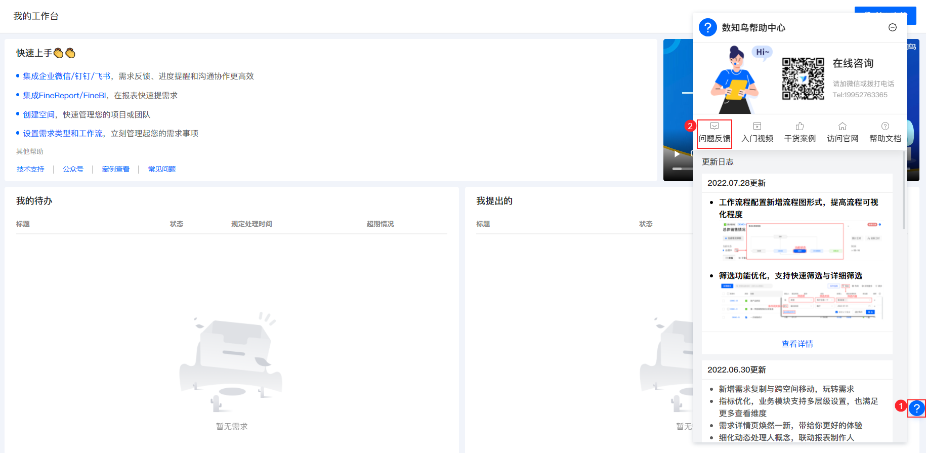 还可以在数知鸟平台点击悬浮按钮「?」>「问题反馈」填写表单。
