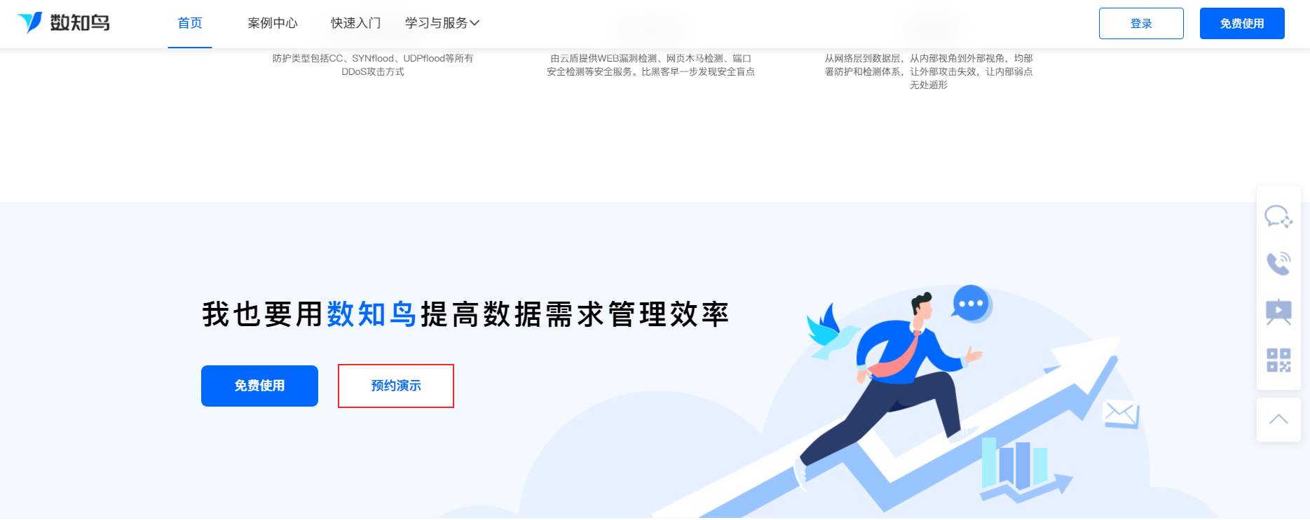 初次使用数知鸟的用户对数知鸟的操作、集成和使用场景有任何困难或疑问都可点击此处填写表单预约演示。