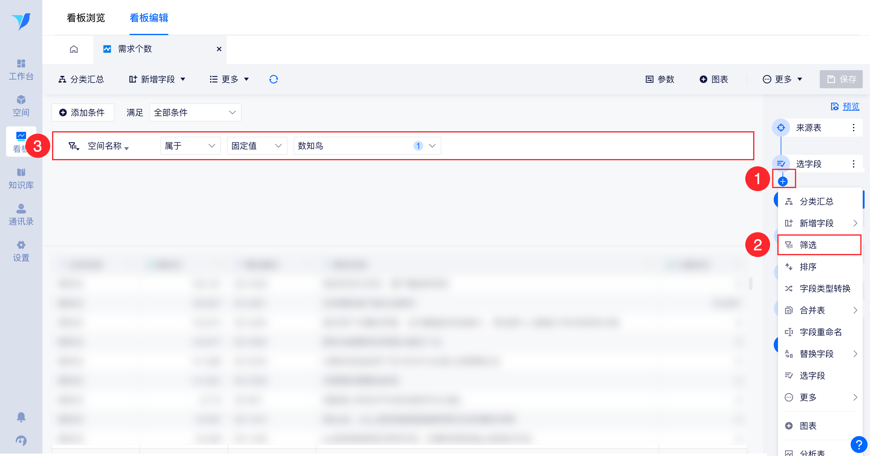 拥有“看板编辑”权限的用户,「设置」>「功能权限」>部门/角色>“看板编辑”