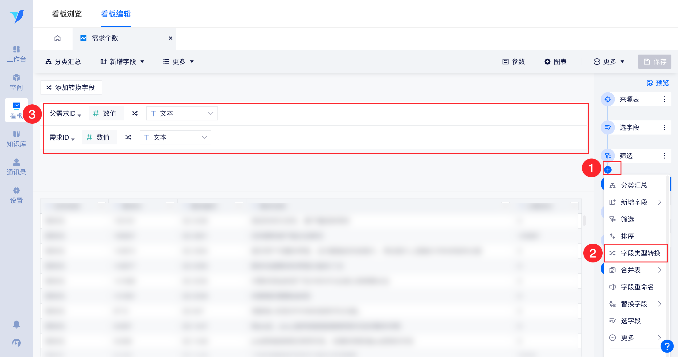 「+」>「字段类型转换」,将“数值”类型转换成“文本”类型