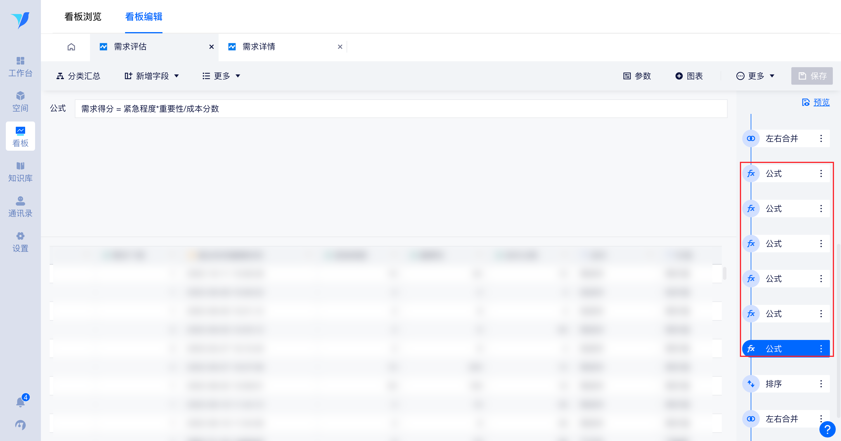根据既定评估规则,写出评分公式,自动计算需求得分