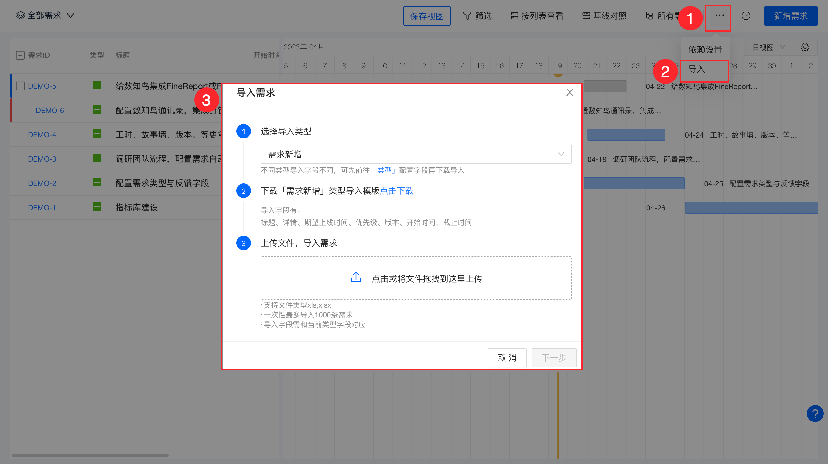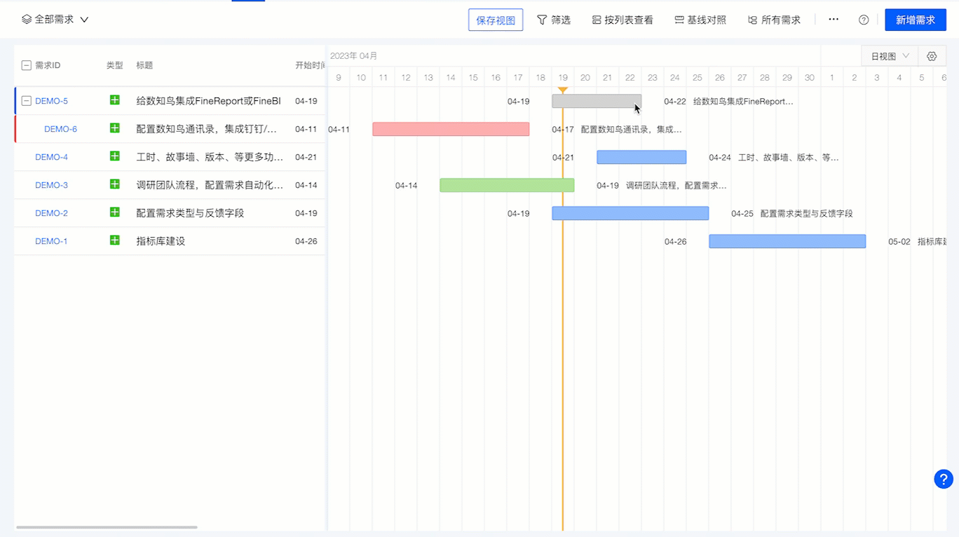 支持直接在甘特图界面新增需求