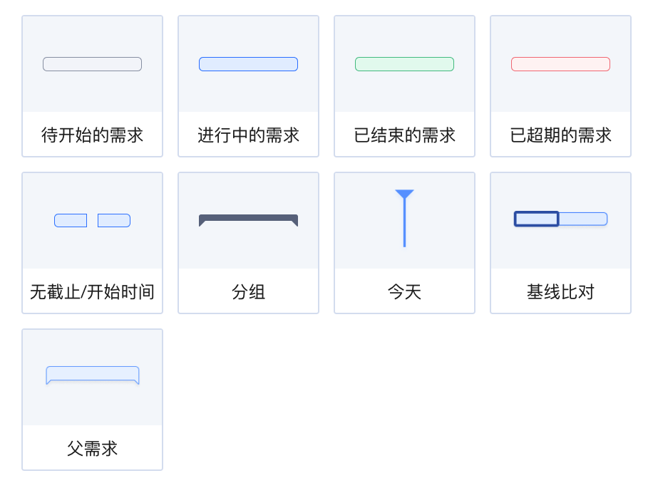 当甘特图发生变化时,可以通过加载基线来进行对比。甘特图的基线可创建一个需求时间信息的静态记录,记录当时的计划情况。