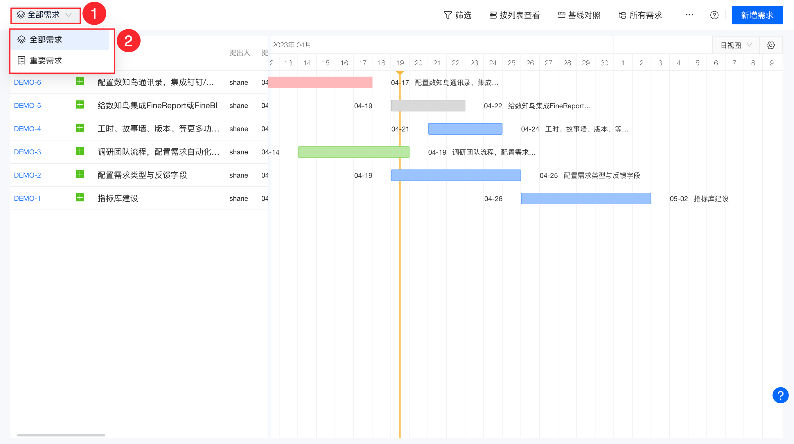 甘特图支持展示更多需求字段