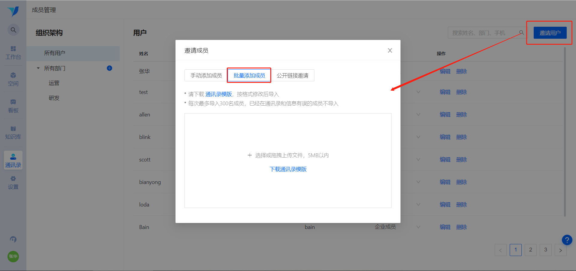 批量添加成员注意事项编辑